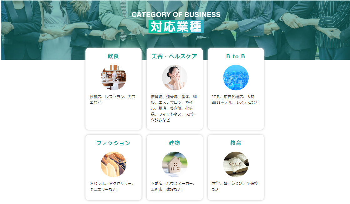 BtoB:IT系、広告代理店、人材、SaaSモデル、システム