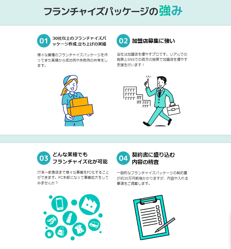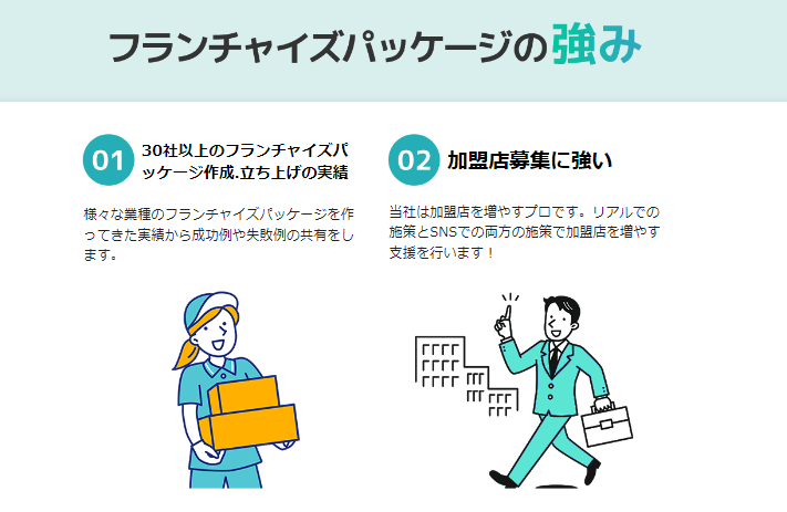 50社以上のフランチャイズパッケージ構築実績あり、どんな事業でもフランチャイズ化