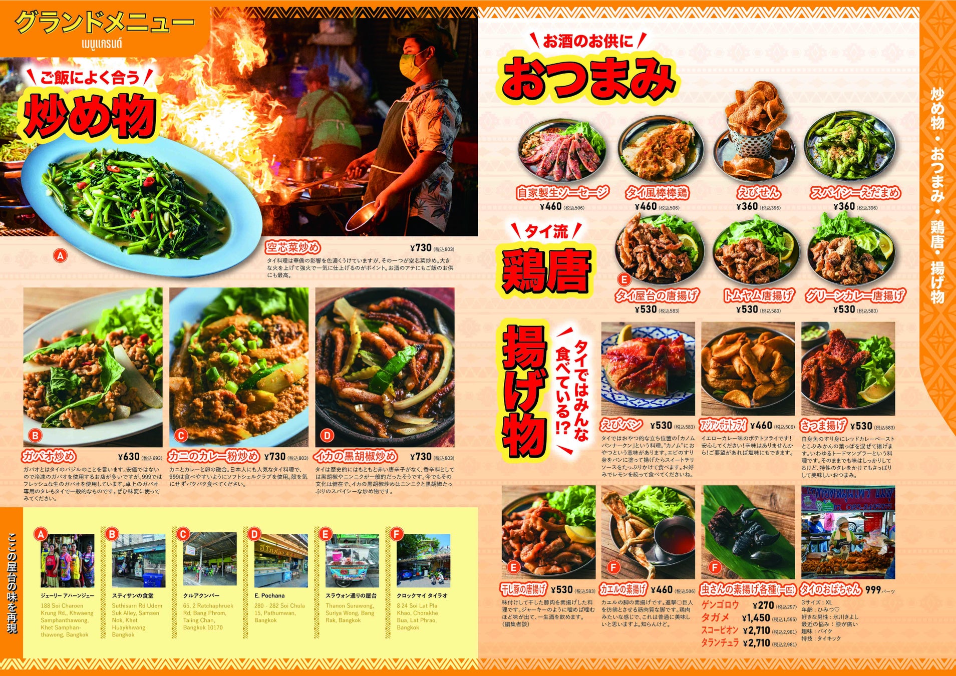 料理は、これまで日本で食べられてきた西洋をルーツとしたタイレストランの味ではなく、中国・潮州をルーツとした大衆・タイ屋台料理の味を再現。タイに幾度と通い、300軒以上のタイ屋台を食べ歩き、出逢ったタイの専門店屋台のお父さん、お母さんが大切にしてきた味をお届けします。現在、新橋、新宿、日比谷、二子玉川、大阪・梅田の5店舗を展開中です。