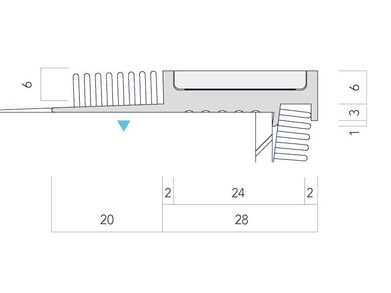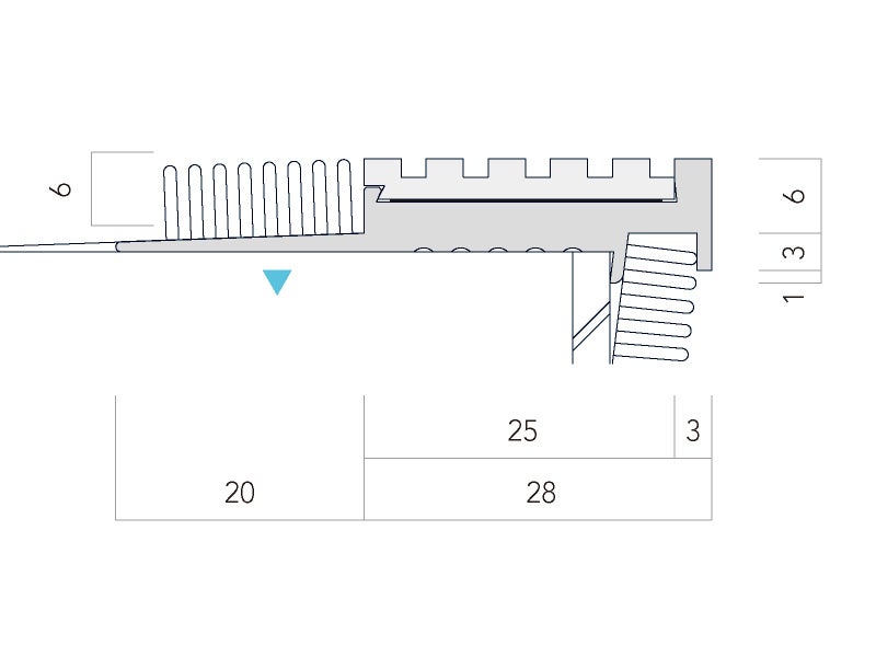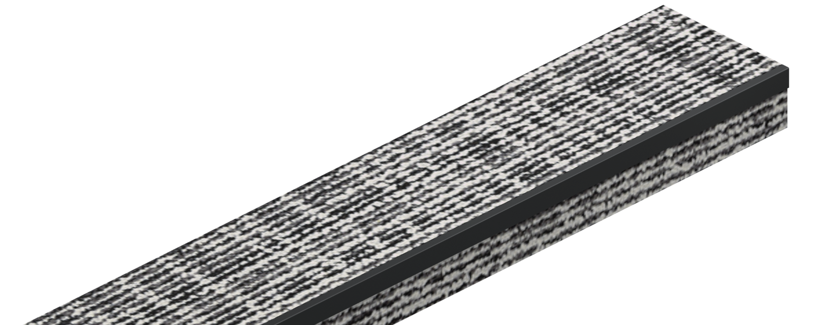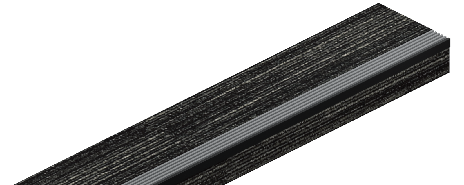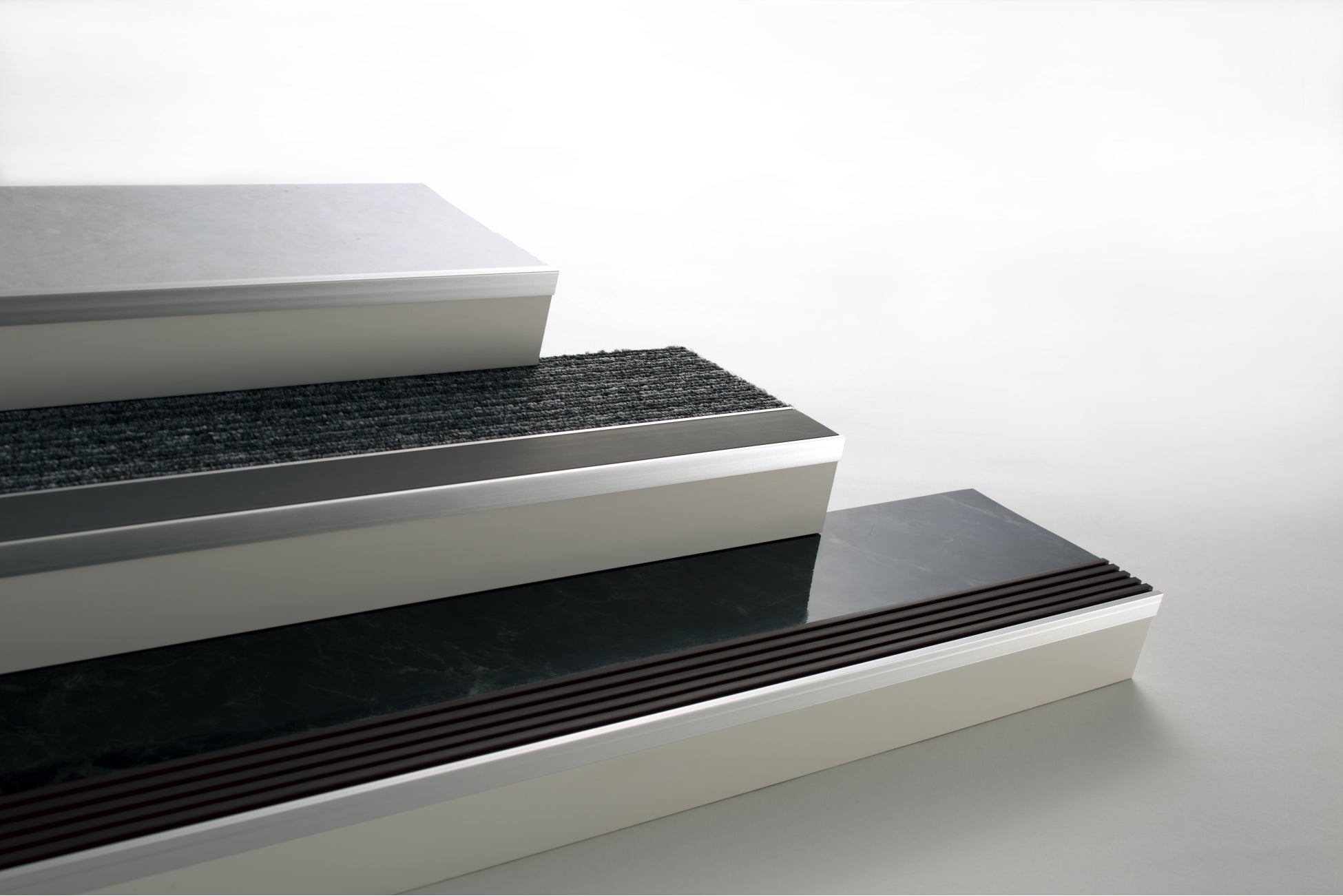 「ミニマルアート」をコンセプトとする室内鉄骨モルタル階段用ノンスリップ&段鼻保護見切り。きわめてシンプルな幾何学形状、あるいはその反復によるシャープなデザインを特⻑とする。タイルカーペットや塩ビタイルとの段差のない「フラットな納まり」と、安全性を確保しながら幅28mm・⾼さ9mmにまで圧縮した「コンパクトデザイン」により、公共建築・商業施設・オフィスビルなどのシンプルな階段デザインと調和する。