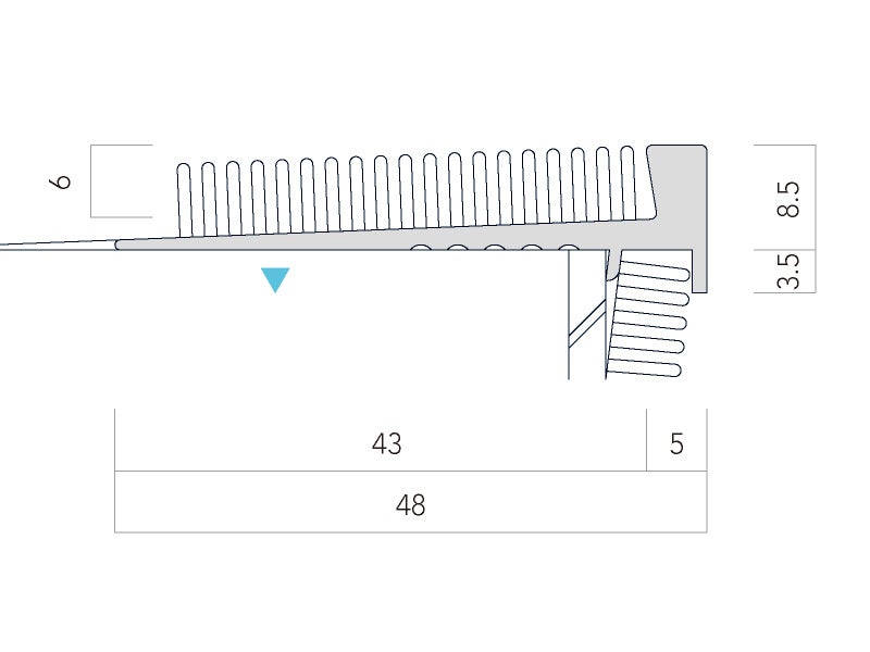 室内鉄骨モルタル階段用 段鼻保護見切り(タイルカーペット用)○段鼻保護を目的とする見付5mmのアルミ見切り