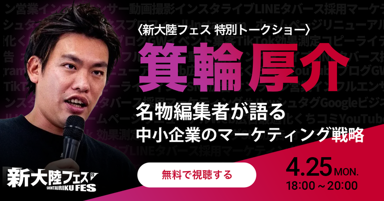 株式会社新大陸(本社:静岡県浜松市、以下 新大陸)主催の「新大陸フェス’22 〜Webマーケティングの祭典〜」に、話題の編集者・箕輪厚介氏が特別講座の講師として登壇することになりました。