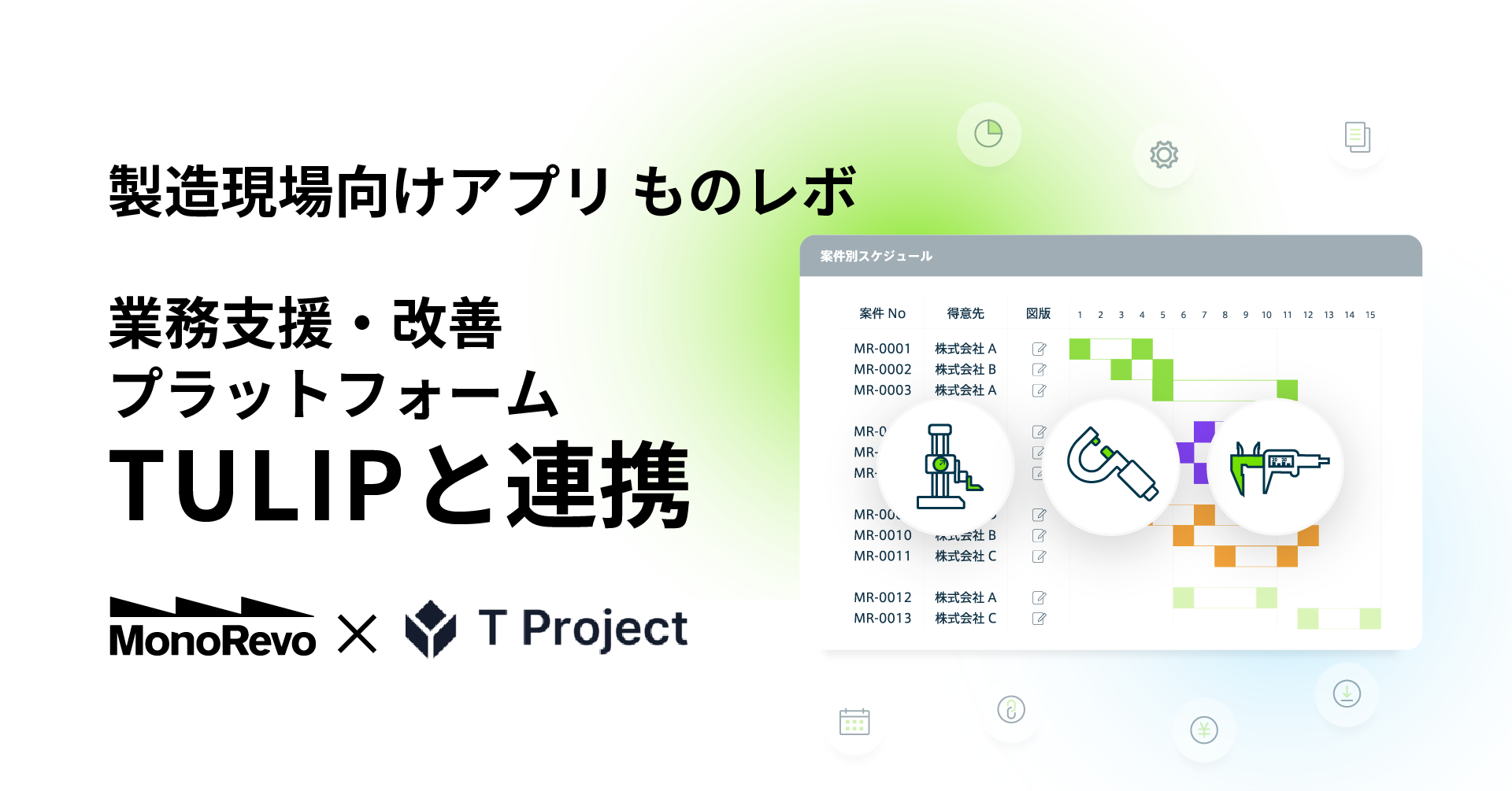 ものレボ株式会社(以下ものレボ)の提供する中小製造業のデジタル化を推進する工程管理SaaS「ものレボ」は、製造現場の業務支援・改善プラットフォーム「TULIP」とアプリ間の機能連携を行いました。