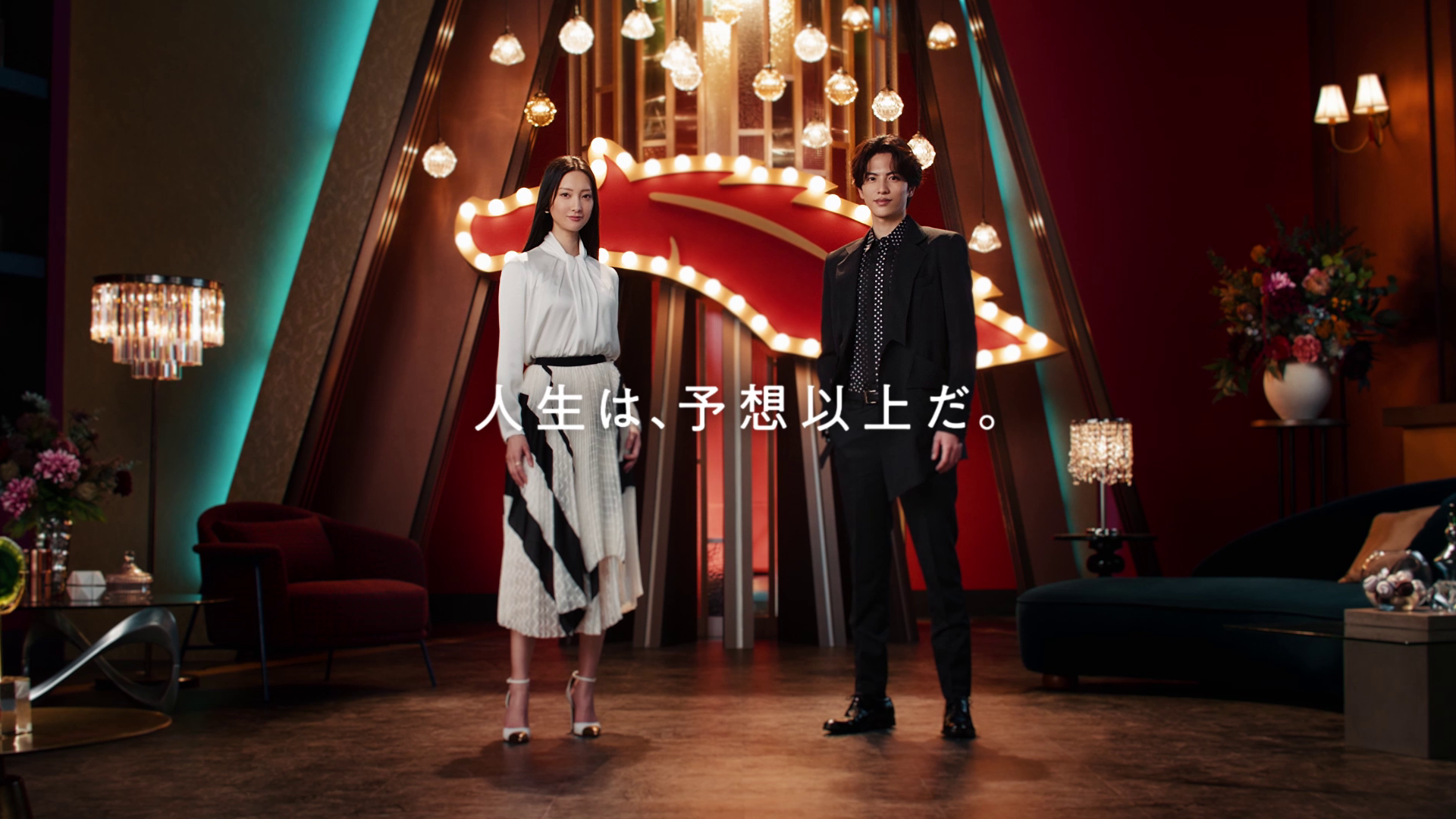 菜々緒さんと志尊淳さんの2人の演技が、駆け抜ける競走馬の映像とシンクロし、競走馬に負けず劣らずのクールさが表れている点が見どころですが、照明で美しく輝く夜の競馬場シーンにも注目です。