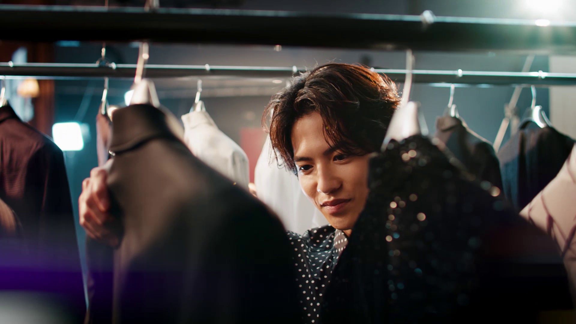 見つめ合う菜々緒さんと志尊淳さん。やっと出会えた二人は向き合ってお互いに歩み寄ります。菜々緒さんが力強い眼差しで「やっと、めぐりあえた。」と言うと、これからレースに挑む競走馬の凛々しい目に。ジャケットをさっそうと羽織る志尊淳さんは、「ずっと、探してた。」と言い、これからレースに向かう競走馬に軽やかに騎乗する騎手とリンクしていきます。そして躍動感のあるレースシーンからダイナミックな走りを見せる菜々緒さんと志尊淳さん。お二人の走る後ろ姿は次第に大井競馬場を駆ける競走馬と今年のテーマ「突き抜けろ。」に。最後に映る、「人生は、予想以上だ。」という文字と共に、今後の人生の展開にわくわくする感情が抑えきれていないお二人の表情。