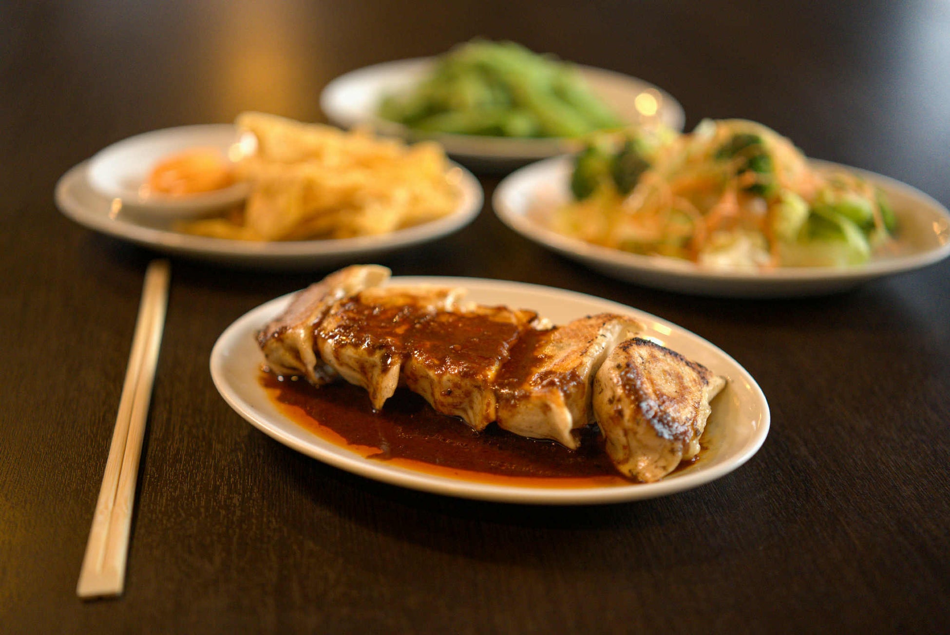 看板メニューの焼き餃子は、自家製の皮と具材にこだわり、定番の味に加え「麻辣ダレ」や「ねぎ塩レモンダレ」など、ユニークなアレンジを展開。