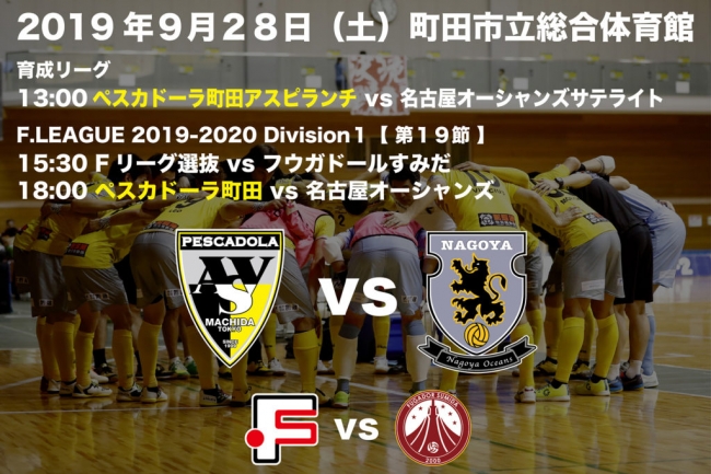 9月28日(土)にFリーグ2019/2020 第19節 ペスカドーラ町田vs名古屋オーシャンズ