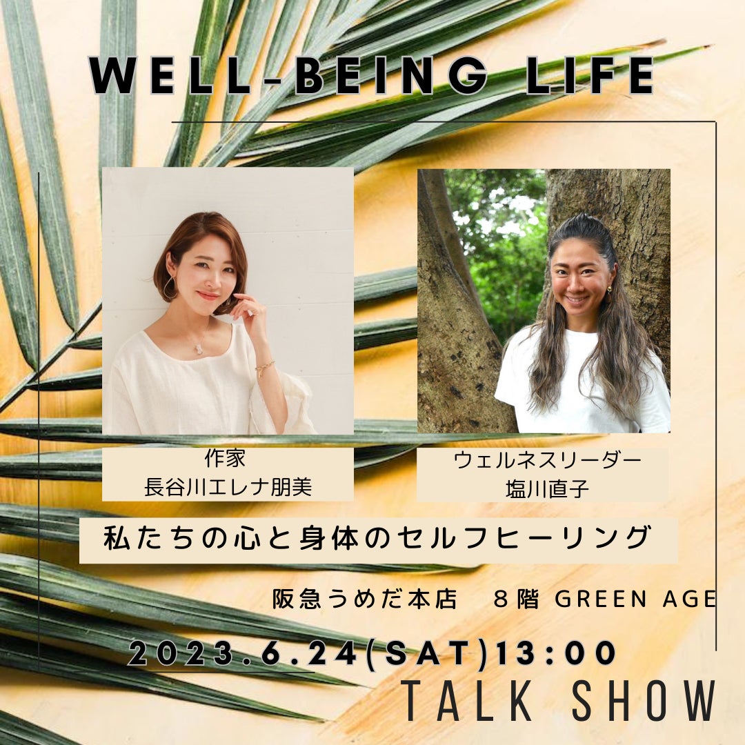 作家 長谷川エレナ朋美と、ウェルネスリーダー塩川直子の心と体のセルフヒーリングをトークショーでTIPSをお話します。参加いただいたお客様の心と体の健康やセルフケア、日々の豊さにつながるお話をいたします。