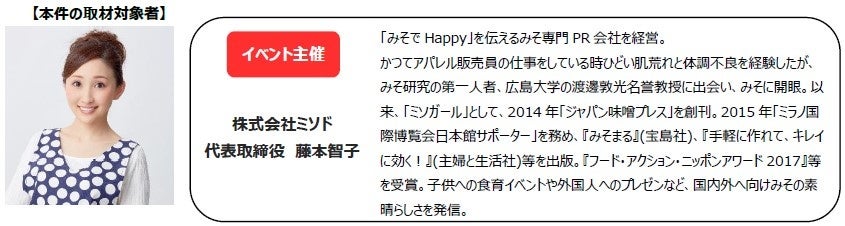 「みそでHappyを伝える」株式会社ミソド(本社:神奈川県横浜市、代表取締役:藤本智子)は、「夏バテ・熱中症」「体重増加」といった生活課題を「みそ汁」を通して解決するべく、専門医、管理栄養士、料理研究家監修のもと、冷たく美味しい「夏みそ汁」レシピを開発し、日本の食卓に提案する活動を行っています。