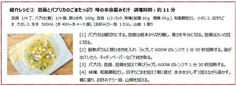 子どもと一緒に作って食育にも◎今回の料理教室の参加者は、「暑い夏はなるべく火を使わないで料理がしたい。レンジだけで作れて夏バテの予防にもなる冷たいおみそ汁は非常にありがたい。家でも実践したい」「夏場はどうしても不摂生になりがちで夏太りも気になる。冷たいおみそ汁なら気軽に作れるので夏場のダイエットにも活用したい」などとコメントしました。また「日々の食が健康を作ることを小さいうちから教えておきたいので、食育にもよさそう。子どもの夏休みの自由研究のテーマにしてもいいかもしれない」などのコメントも見られました。日本のソウルフードであるおみそ汁を使った食育、夏休みの自由研究にいかがでしょうか。