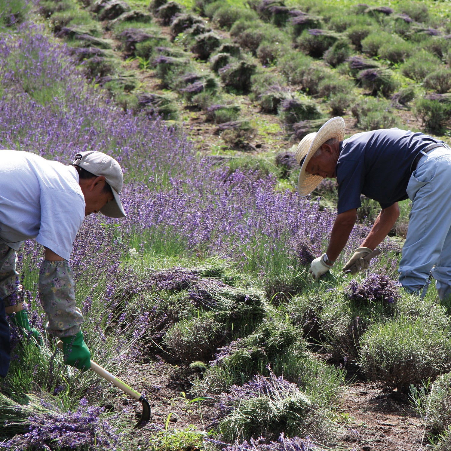 北海道産ラベンダーストーリー|上富良野町の花観光の役目を終えた花から精油を抽出。抽出後は家畜のえさや肥料として活用しています。