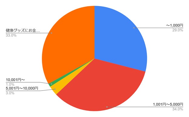 また、健康グッズにお金を使わない人が33%と一定数存在することもわかりました。