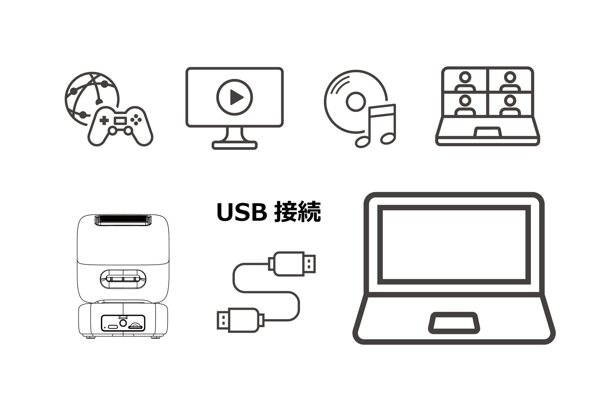 オンラインゲームやYOUTUBEなどの動画配信、オンラインミーティングでも遅延が少なく、高音質再生が可能です。※USBオーディオ機能を使う場合は、必ず付属のケーブルを利用してください。