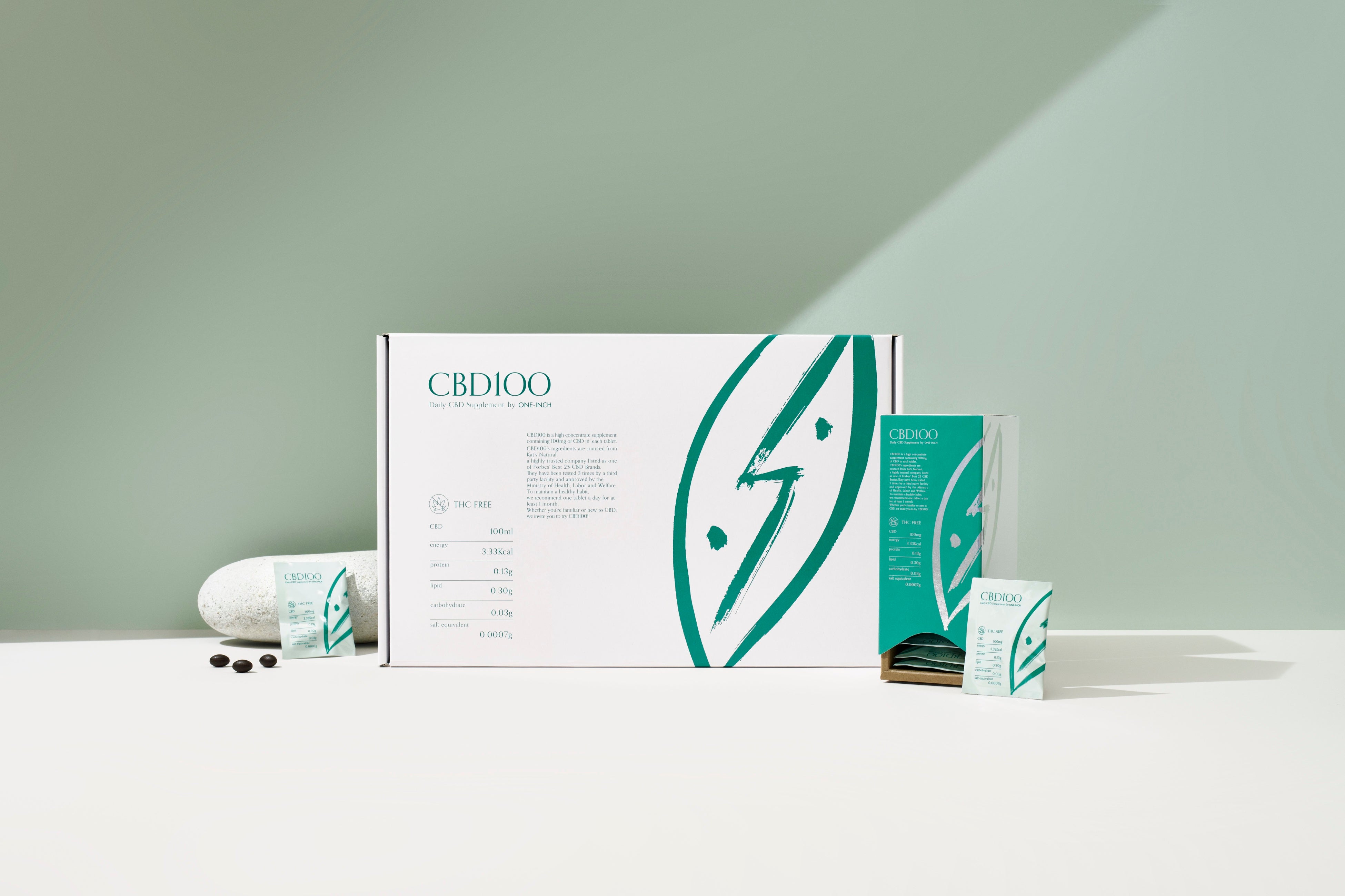 2022年1月にプレローンチした、CBD100は、 たった1粒に100mgのCBDを配合した、業界最高水準のサプリメント。1箱30粒入りで、胃で溶けにくい腸溶性カプセルを採用しています。光/酸素を通さないアルミ x PVCの2重加工フィルムを採用し、1日分ずつ分包することで、鮮度を維持。国際的なアンチドーピング機関であるNSFでのアンチドーピング検査を実施し、アスリートでも問題なく使用できることを証明しております。