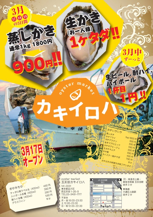 この機会に是非oyster market【五反田カキイロハ】にお立ち寄りください。