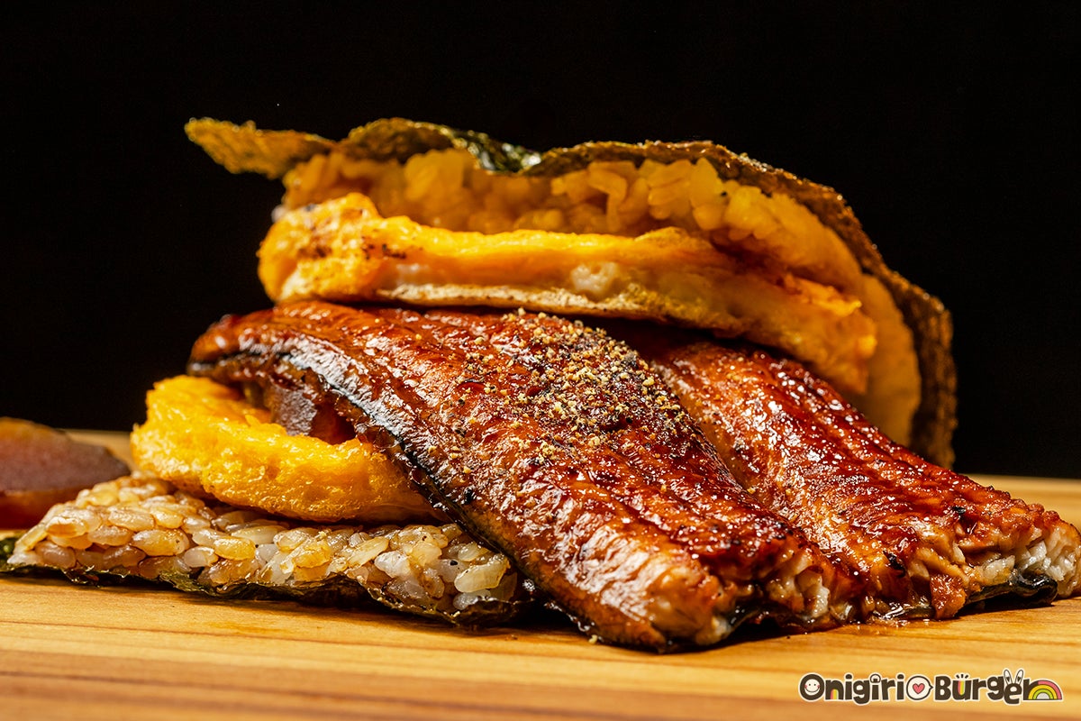 『鰻の蒲焼き~ダブル玉子』おにぎりバーガーは、栄養価の高い「うなぎ」と日本伝統の味わいを詰め込んだ、一口ごとに特別感を味わえる究極の一品です。