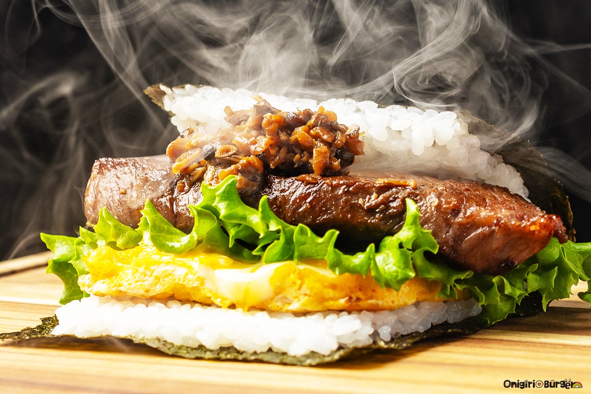 「侍"SAMURAI" 神戸牛ステーキ」おにぎりバーガー
