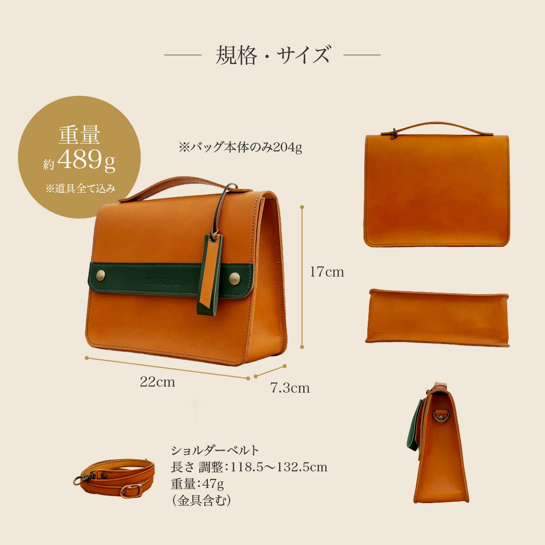 「大切なお子様に贈りたい。革職人が手掛けた、一生モノの裁縫バッグ」をコンセプトに2023年に発売したのはキャメル、ネイビー、グリーンのベーシックカラー3色です。