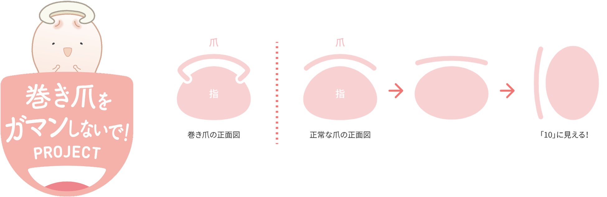 プロジェクトの一環である記念日『巻き爪を知る!治す!予防する!日』は、10を時計回りの横にしてみると、巻いていない爪・指の形に見えること、また、夏本番に向けて外出が増え素足の露出が多くなり、爪を意識しだすことから、7月の10日に制定されました。