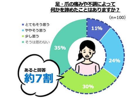 自身が巻き爪の場合、巻き爪を治療することで「再び挑戦したいことにチャレンジできると思うか」と尋ねた設問では、70%が「そう思う」と回答。こうした結果からは、足元の不調が行動の妨げとなる一方で、正しいケアと医療機関での治療によって、生活の質や前向きな気持ちが取り戻される可能性があることもうかがえます。