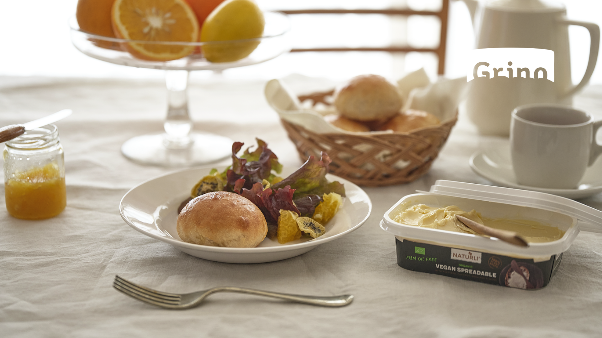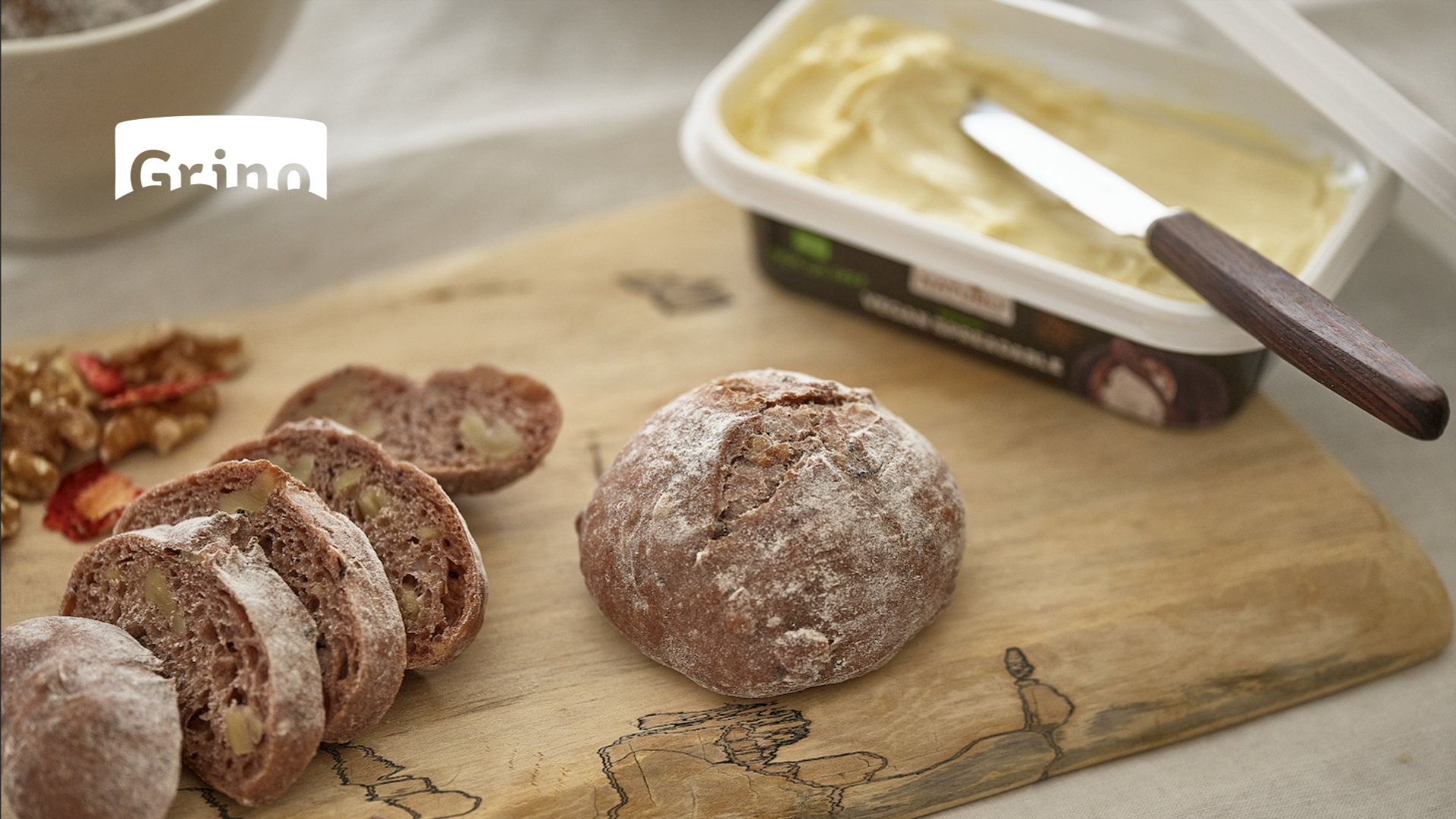 温めるとカシスと小麦の芳香な香りにくるみの香ばしさがふわりと感じられ、食卓が一層華やかに盛り上がります。何よりNaturli'ブランドの「プラントベース・有機スプレッド」との相性が抜群ですので、熱々に温まったカンパーニュと有機スプレッドで美味しく召し上がってください。