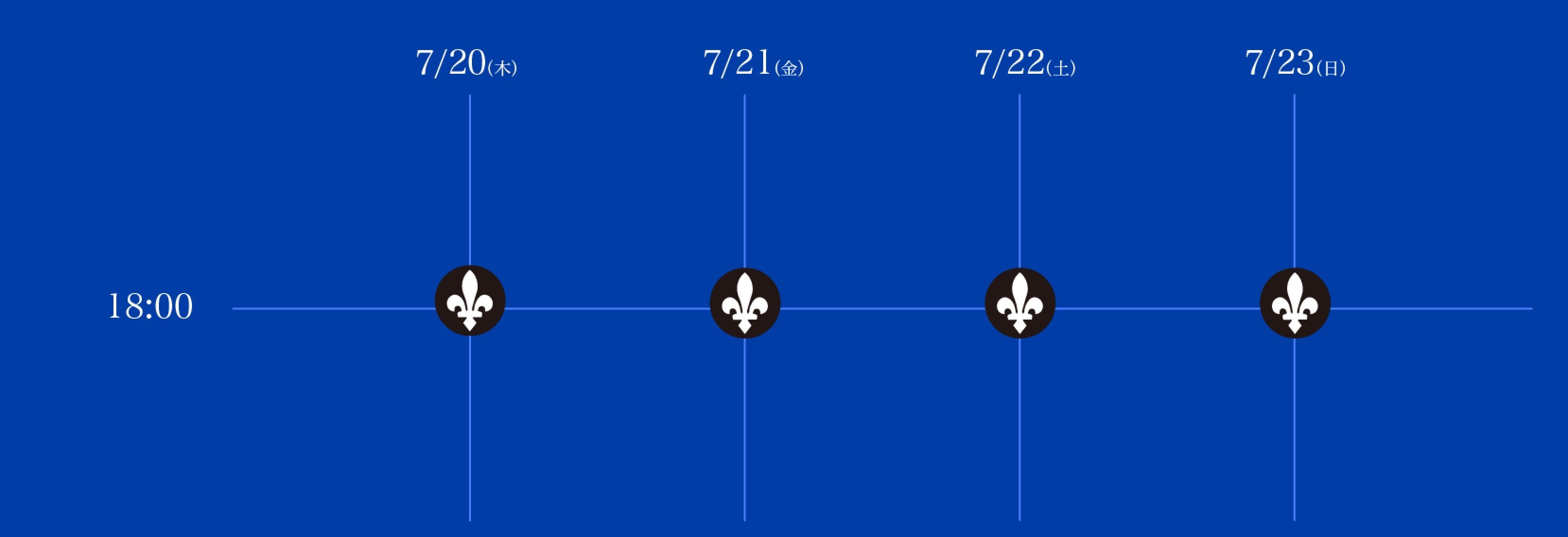 7月5日(水)19時/7月6日(木)13時、19時/7月7日(金)19時