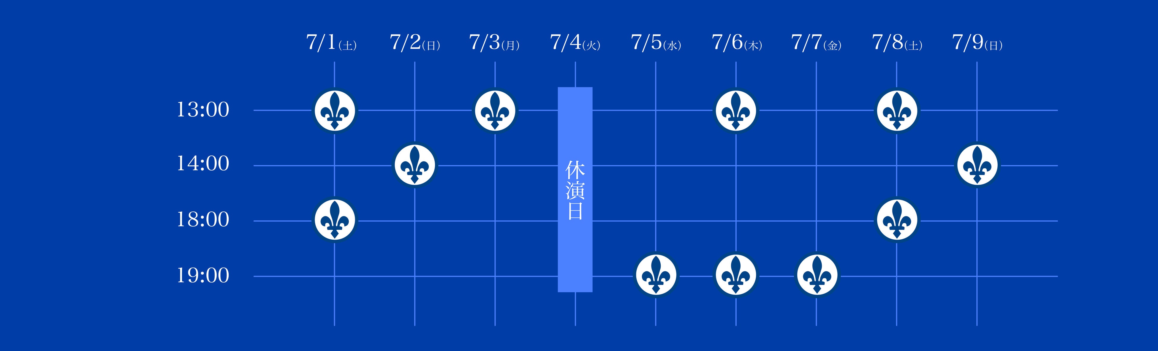 7月1日(土)13時、18時 /7月2日(日)14時/7月3日(月)13時