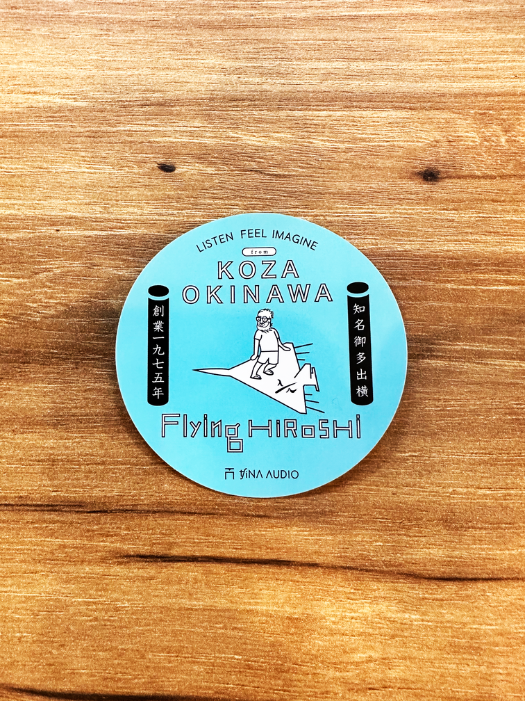 今回、第一弾として、開発者「知名 宏師(ちな ひろし)」が、製品開発の発想の源であり趣味でもあったラジコン飛行機に乗ったキャラクター『Flying HIROSHI』を描いたTシャツやステッカーをご用意。2023年5月25日(木)より、オンラインショップにてお買い求めいただけます。