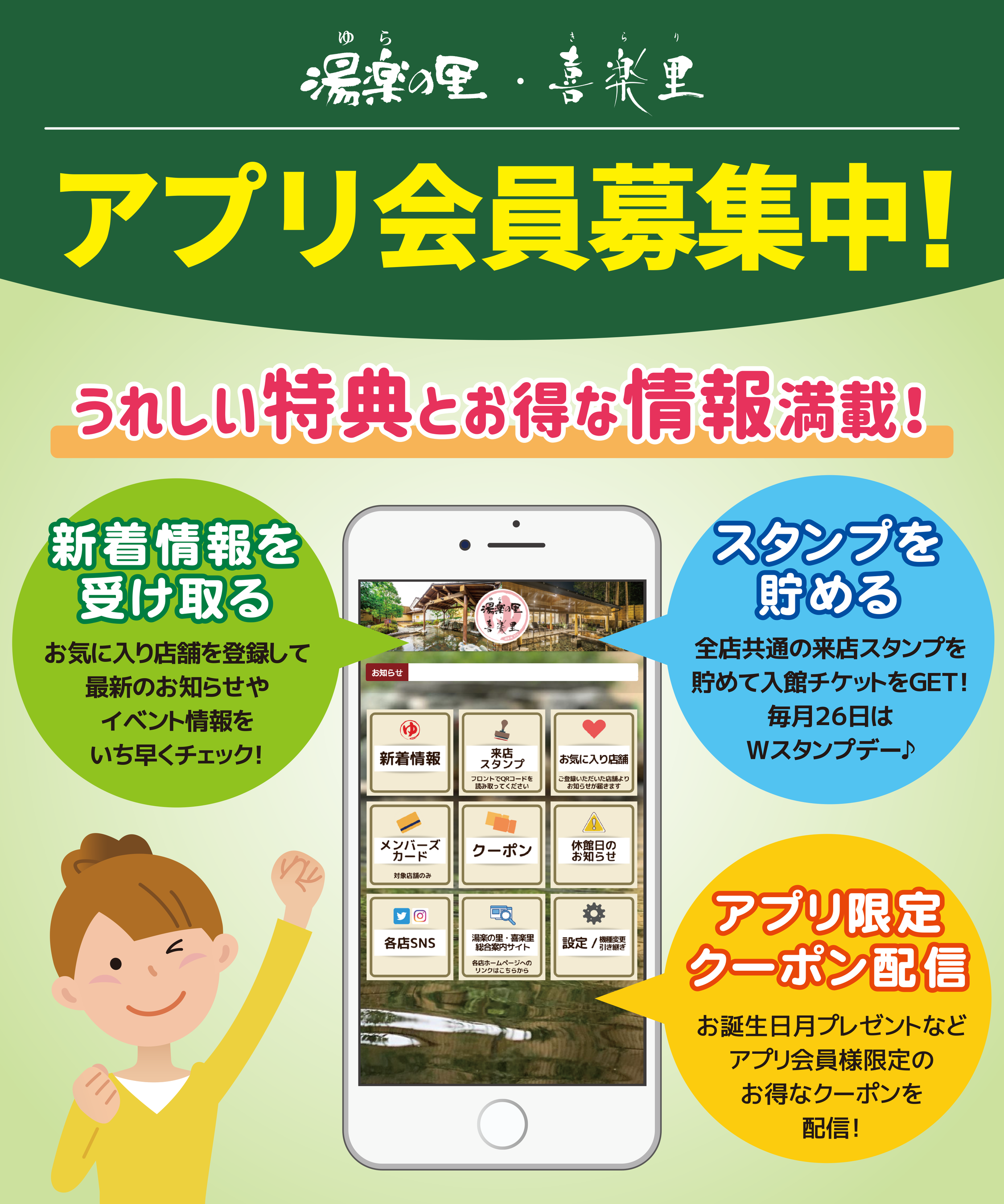 - 湯楽の里・喜楽里アプリ公開記念イベント