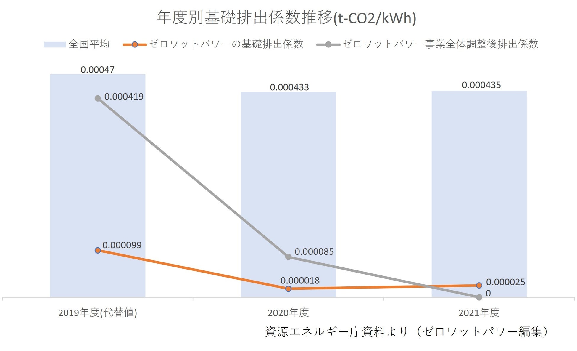 ゼロワットパワー 電気事業者別の二酸化炭素基礎排出係数0.000025(t-CO2/kWh)