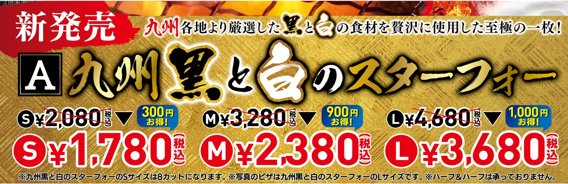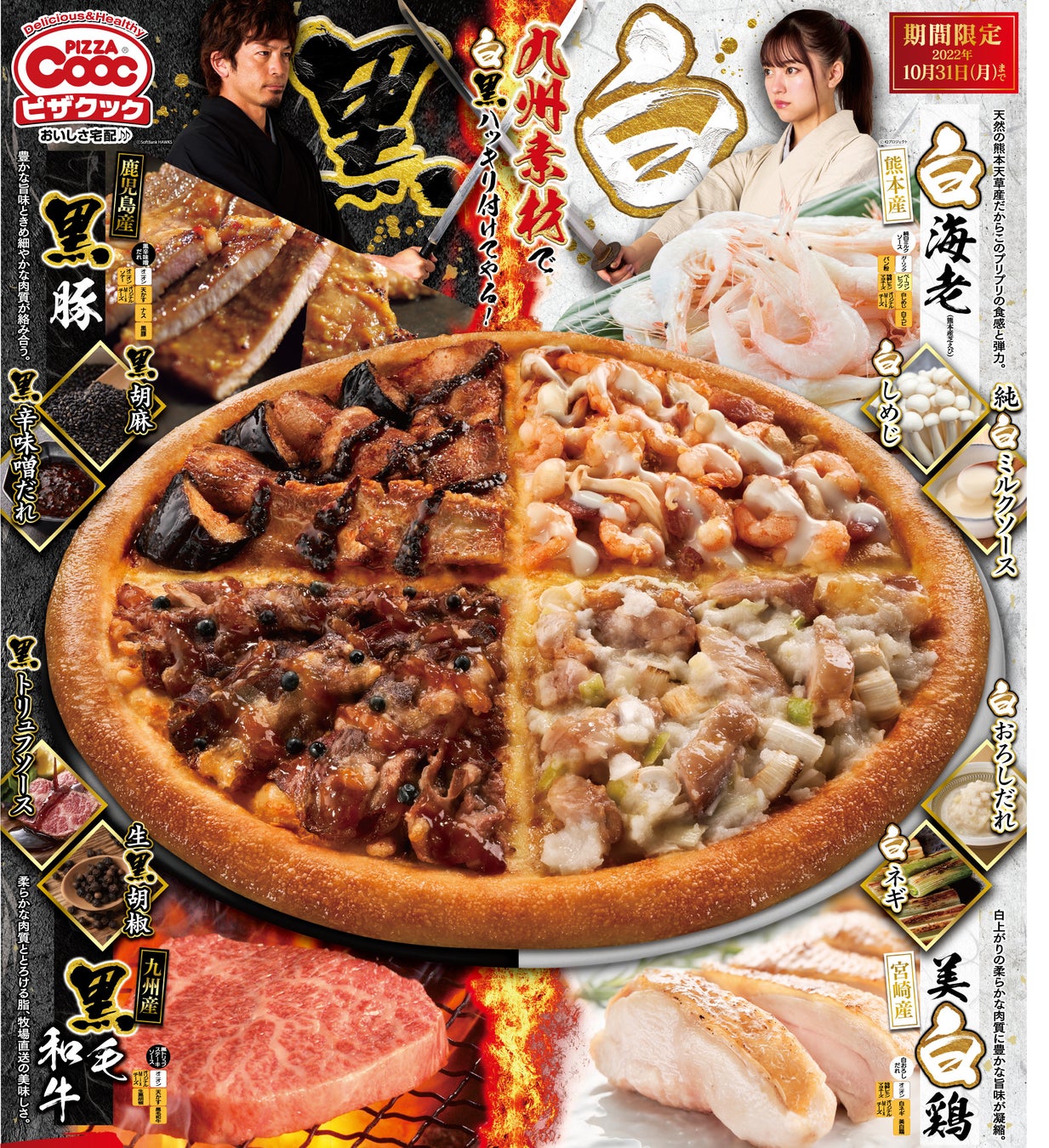 ピザクック(運営元:イワタダイナース)から6月24日(金)に「九州黒と白のスターフォー」新登場!地産地消にこだわり、鮮やかな「黒と白」に仕上がった九州黒と白のスターフォー、ぜひご賞味ください。