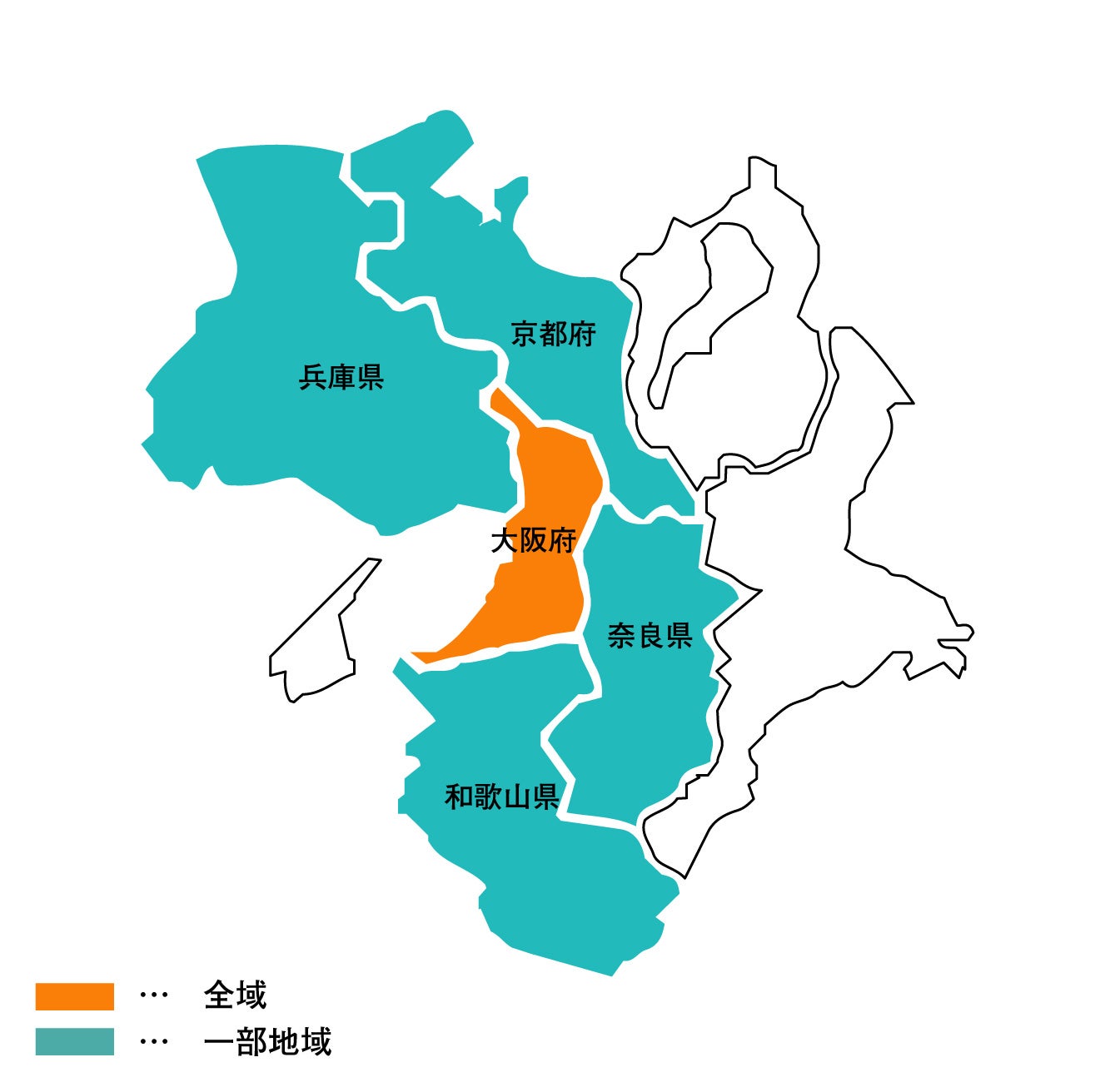 まずは関西エリアの下記地域にて同サービスをご提供いたします。今後、サービス提供地域を拡大していく予定です。同サービスの提供地域については下記をご確認ください。