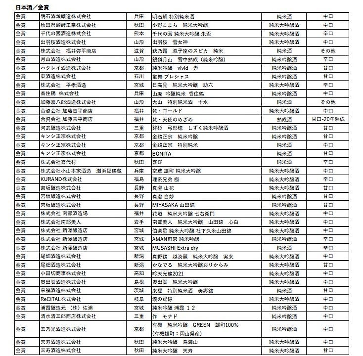 2021年:世界から5246アイテム。日本から312アイテム。日本ワイン87アイテム、日本リキュール47アイテム、日本酒178アイテムの出品。女性ワイン専門家がジャッジする日本酒という点では、今最も注目される国際日本酒コンクールとなりました。