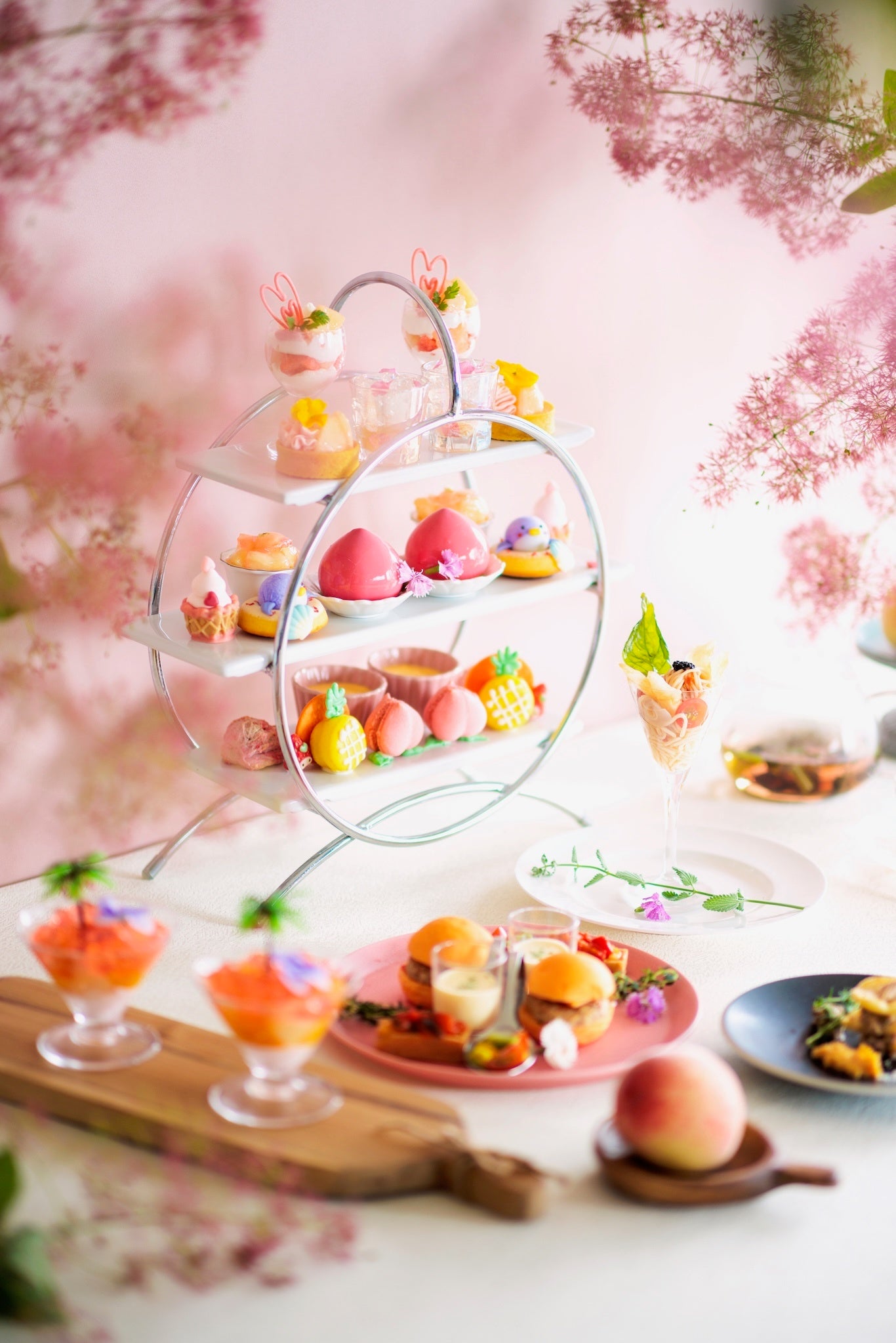 季節ごとにテーマを変えてご提供しているアフタヌーンティーセットの最新作は、旬を迎える桃を主役にトロピカル(南国風)なイメージを合わせた夏らしいスイーツが揃います。セットでご用意するセイボリー(軽食)にも、白桃やマンゴーを使用し、旬の果物をいろんなスタイルで楽しんでいただけます。