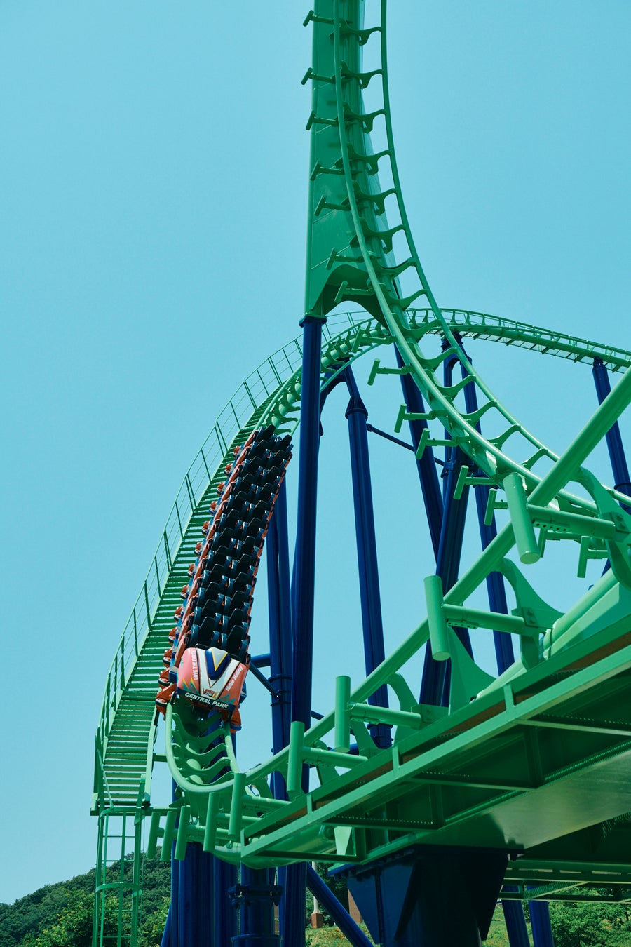 設計は「コースターの神様」とも呼ばれるドイツのコースター設計者、アントン・シュワルツコフ。 スタート後、最高部約36mまでゆっくり登るとそこからエア・ポケットと呼ばれる最下部まで一気に高速ドロップ。到達後すぐに上昇すると、今度はひねりながらのドロップを行い、垂直ループ(ループ・ザ・ループ)へ突入します。スピードを保ったまま体は逆さまになり“グルン”と垂直ループを通過、その後は上下左右さまざまな高速ひねりが待ち構えています。速度変化によって発生する体にかかる負荷は、ジェットコースターで国内最大級となる5.2G。暑い夏に風を切り裂きながら駆け抜けていきます。