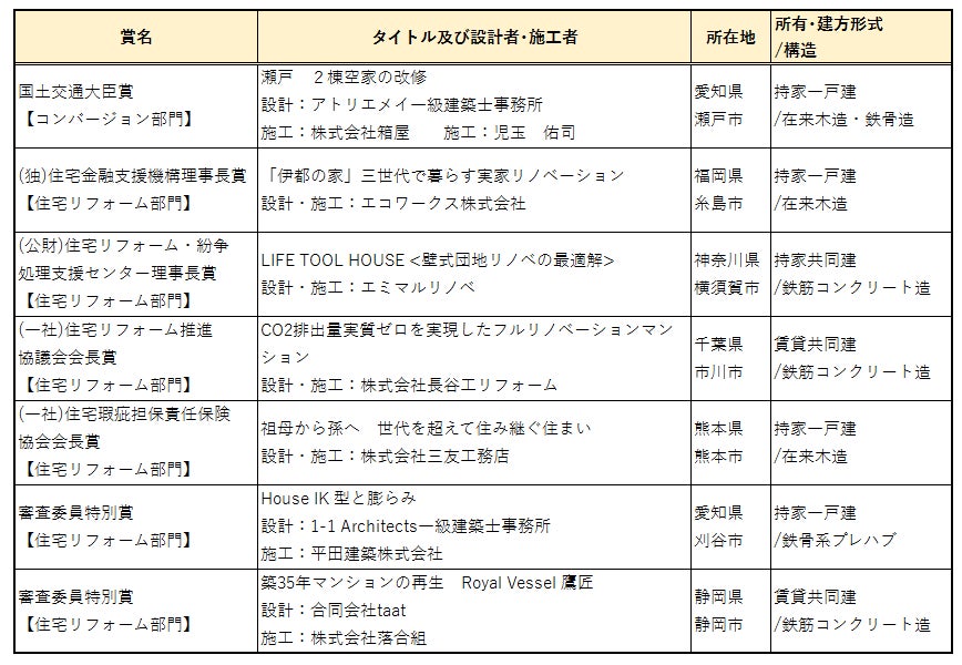 「第41回住まいのリフォームコンクール」国土交通大臣賞などの受賞決まる