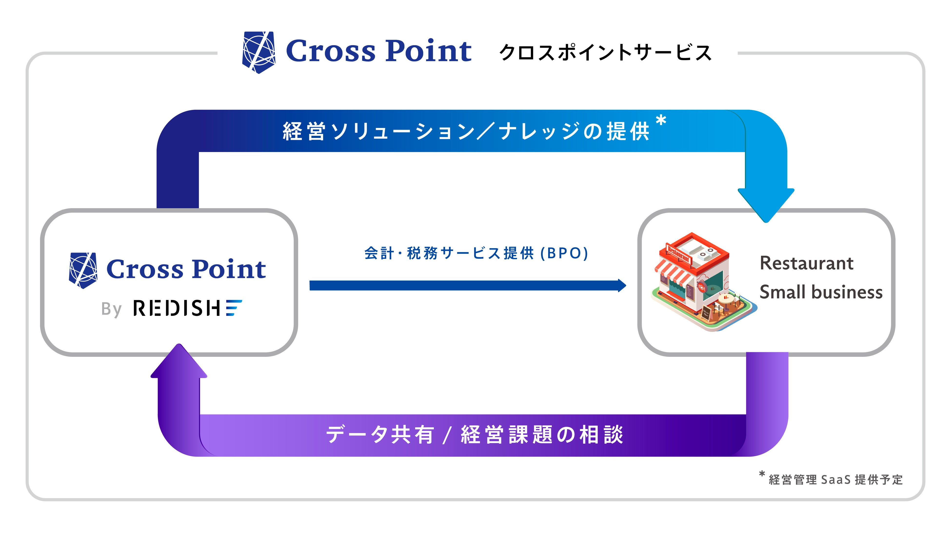 当社は、非常に魅力的な価値を提供しているにもかかわらず、コロナ禍で苦境に陥っている飲食業界や、飲食業界と同様の課題を抱えているスモールビジネスに向けて、会計税務のアウトソーシングサービス(BPO Business Process Outsourcing)である「Crosspoint」を提供しています。
