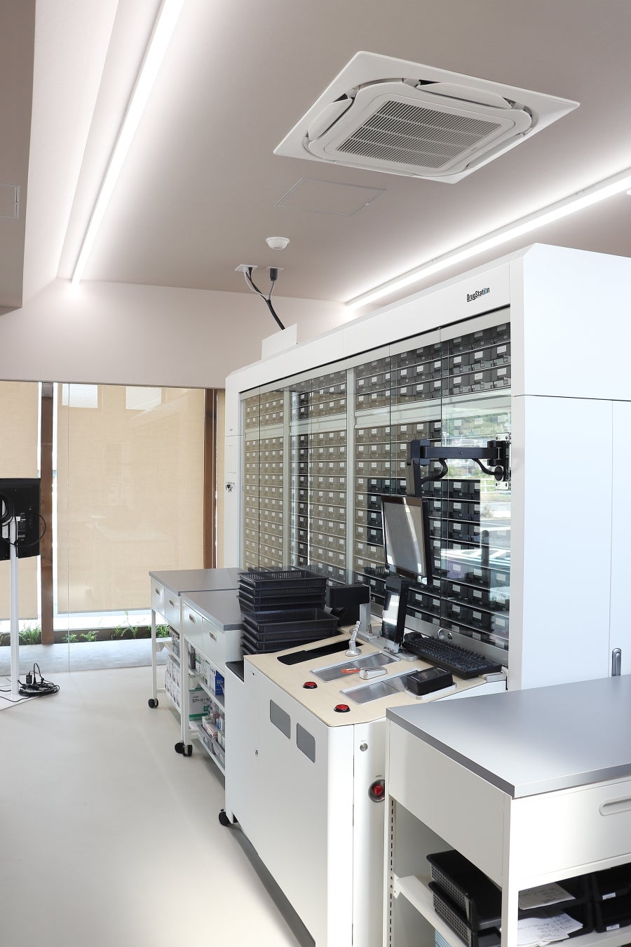 薬局業界全体で対物業務から対人業務への転換が進み、医療のファーストアクセスの場としての機能が求められる中、当薬局ではかねてから店舗の規模や特色に合わせて調剤機器の選定を行ってまいりましたが、今回、転換のさらなる加速を目指し本機の導入を決定しました。