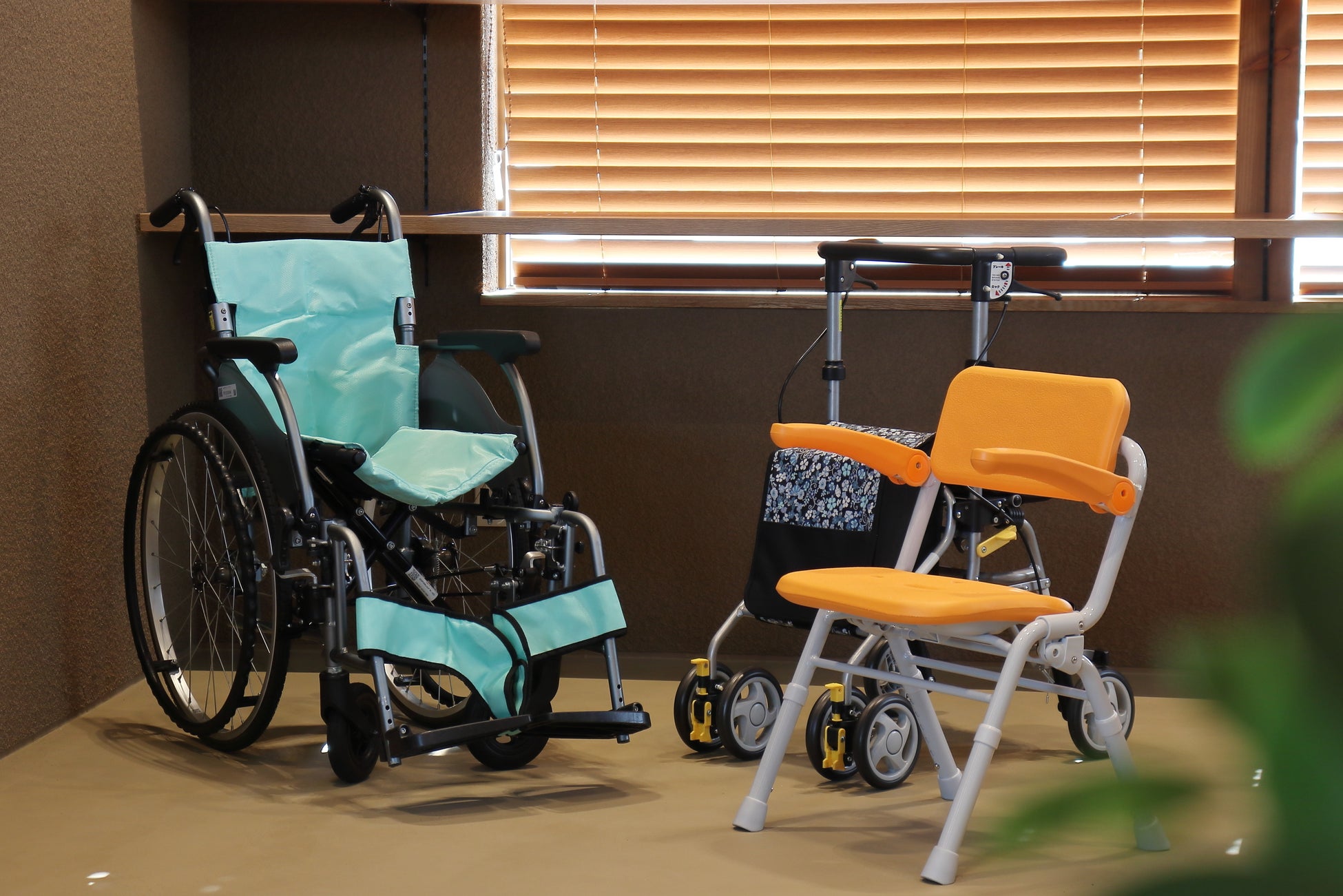 同店は当社の旗艦店としての機能も有しております。展示のメインとなるのは、当社(パナソニック エイジフリーショップ岡崎)で取り扱っている車椅子や杖などの福祉用具。お客様は実際に福祉用具に触れたり、使用感をお試しいただくことができます。