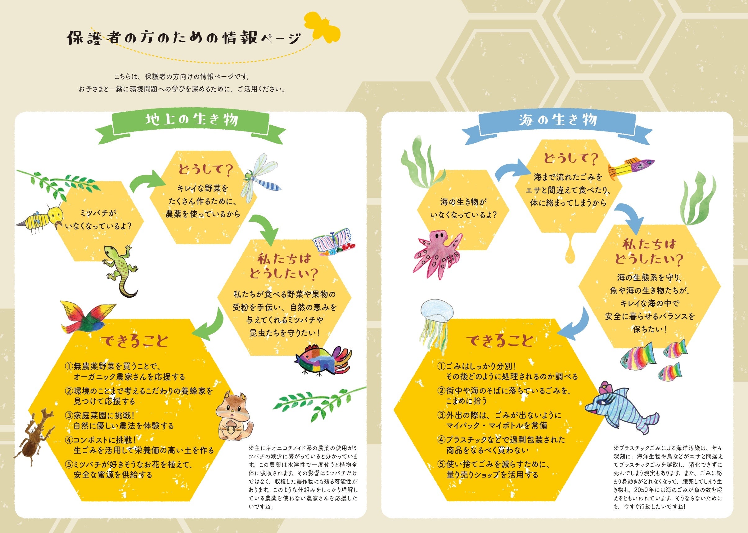 子どもたちをサポートできるよう、巻末には保護者の方向けの解説情報ページも設けてあります。環境問題についてより知ることで、お子さんからの質問などにも自信をもって答えられるようになり、会話も充実します。お子さんと一緒に学びを深めるために、ご活用ください。