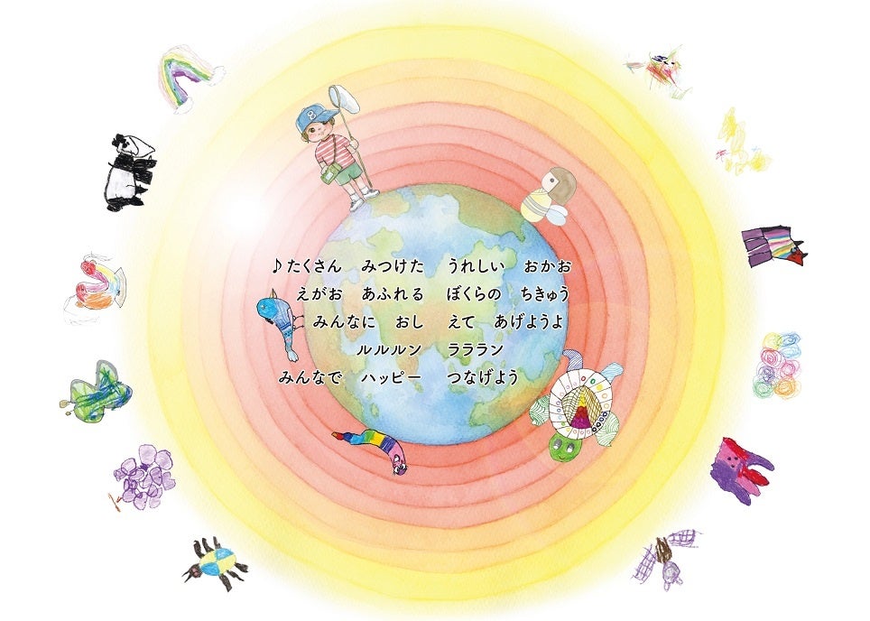 本作は、プロのイラストレーター・佐々木なほみが描く水彩背景画に、子どもたちから公募した個性あるイラストが並ぶ、新感覚の絵本。このように、プロのアーティストと子どもの共作で、環境絵本の制作がされるのは世界初(※)。子どもたちが自由な発想で描いたユニークなキャラクターたちと、アーティストの描くやさしくファンタジーな世界観が織りなす、これまでにない一冊となっています。環境問題について楽しく学べるだけでなく、日本の子どもたちがグローバルなレベルで環境問題への意識を高め、自ら考え行動する力をつけることができます。