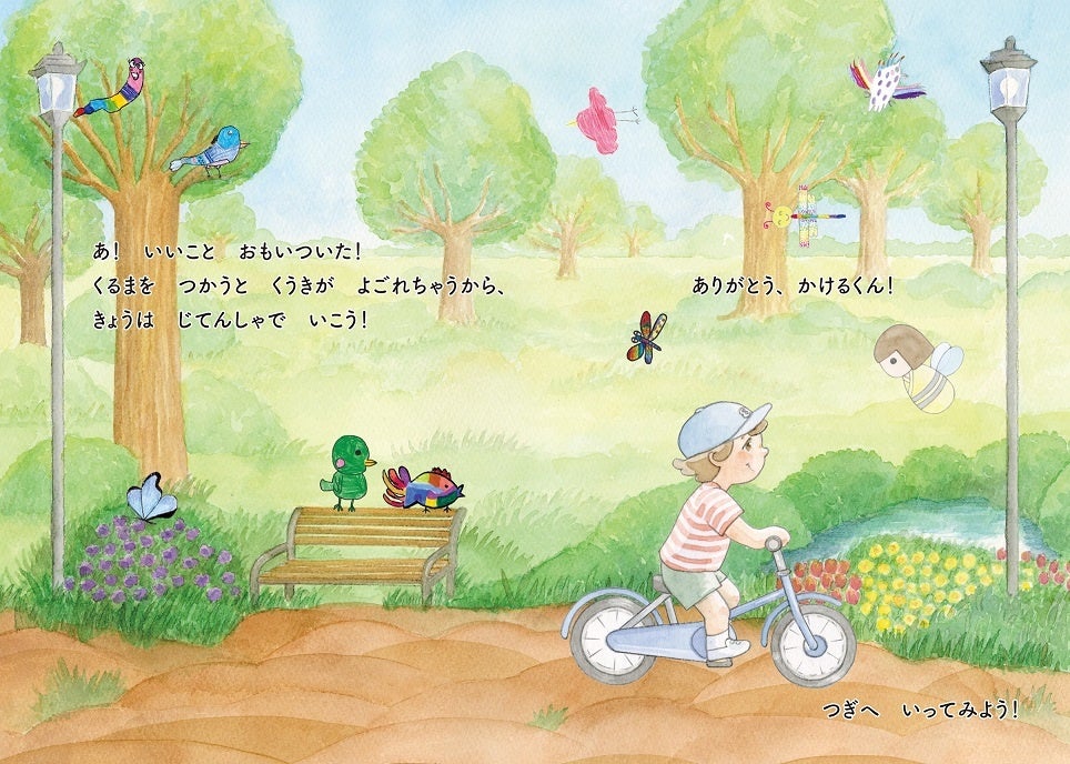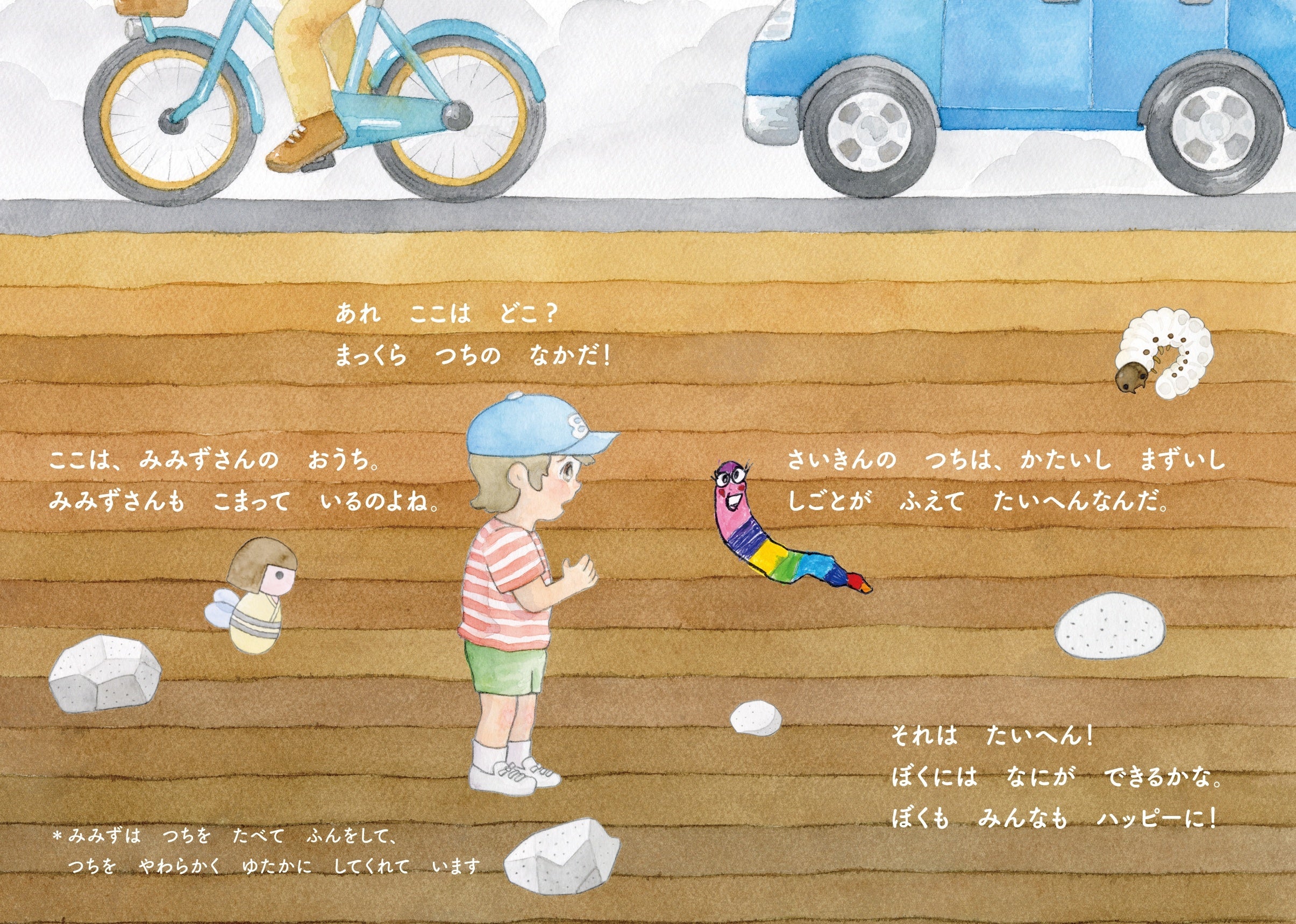 「くり返しのリズム」を多く取り入れることで、一緒に声に出して読みやすくしました。「ぼくにはなにができるかな。ぼくもみんなもハッピーに!」と、自主的に考えることを促したり、他者を思いやる気持ちを育てるためのフレーズもふんだんにちりばめられています。
