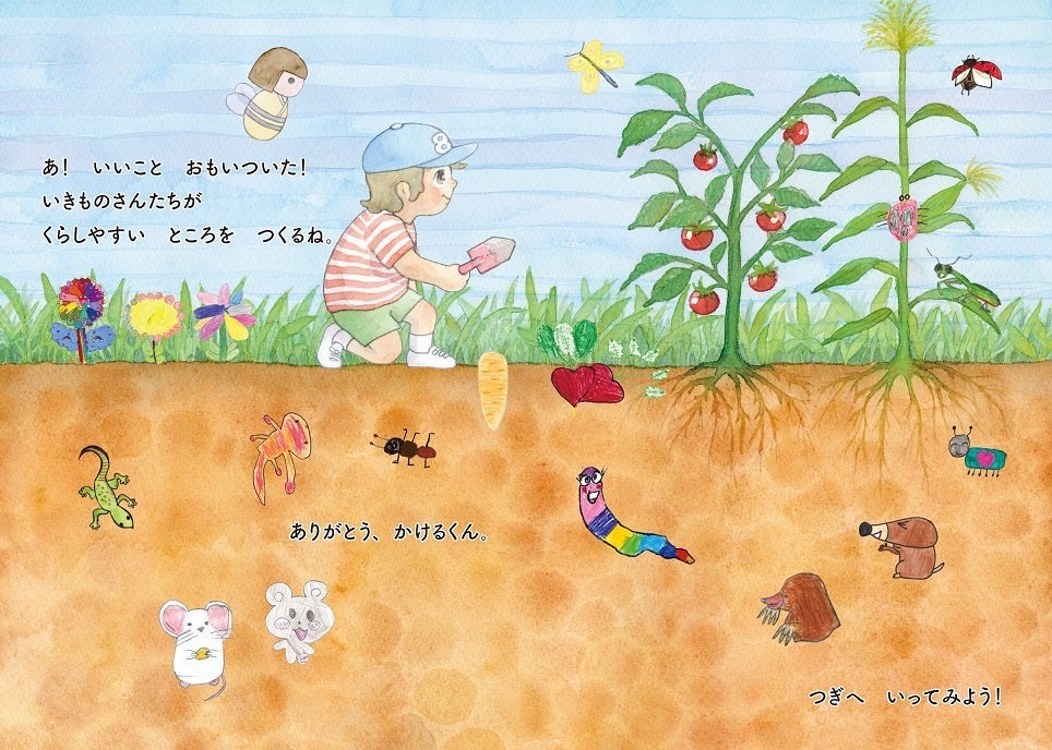 絵本のストーリーは、「問題定義 + 問いかけ」という流れで構成。これによって、難しくなりがちな環境問題も、当事者意識をもちながらも楽しく読み進めることができます。読了後にはお子さんが考えるための時間を設けてみてください。そしてあがったアイデアを実行に移して、その体験をぜひまわりのお友達にも広めてください。