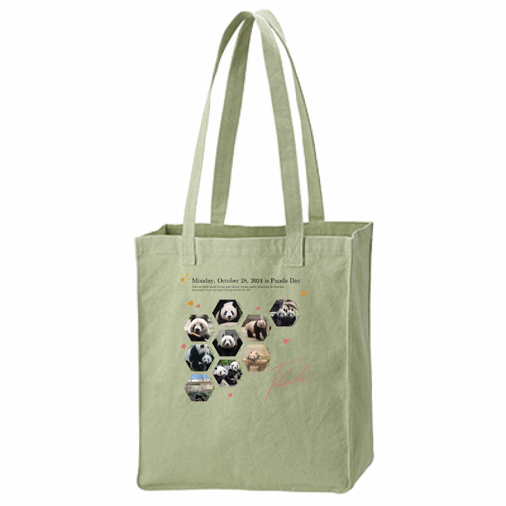 厚みのある生地で風合いもおしゃれなタテ型ウォッシュトートバッグ。片面に上野動物園歴代パンダたちの写真をベースにした共通デザインをプリント。丸みを持たせた角底はしっかりと幅があるため、荷物もたっぷり入ってメインバッグにも最適。