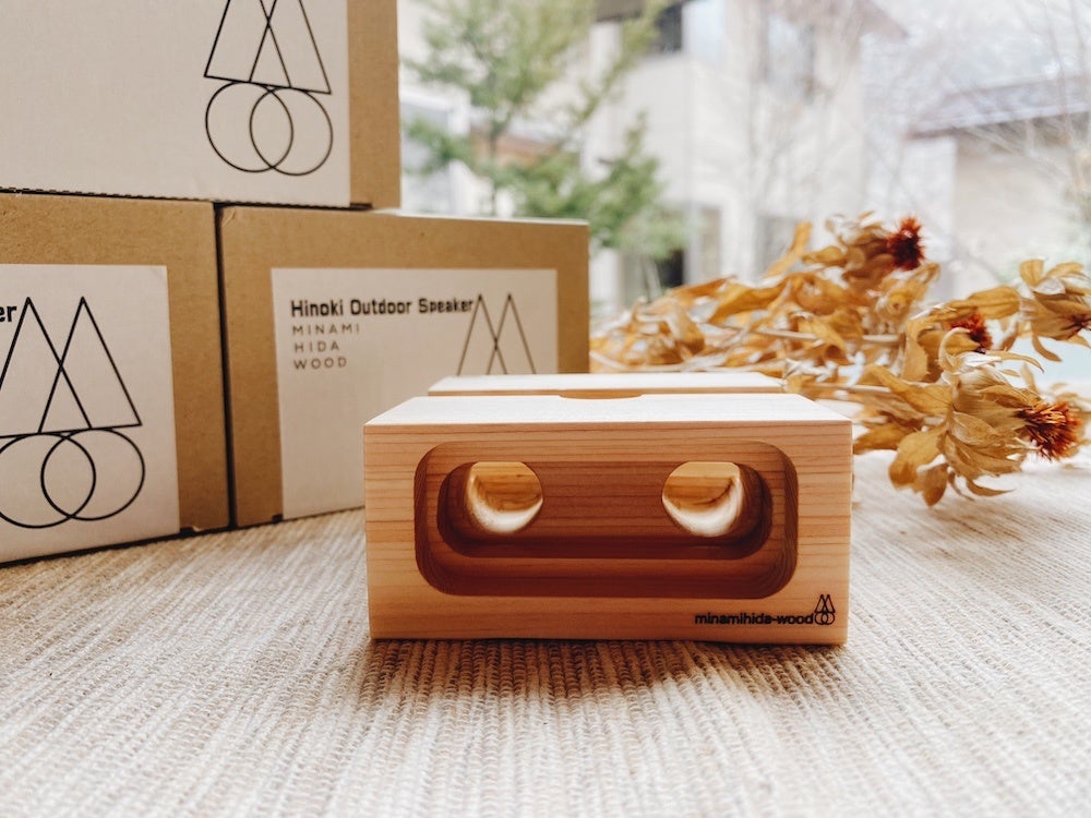 ▲南ひだウッド協同組合のヒノキスピーカー