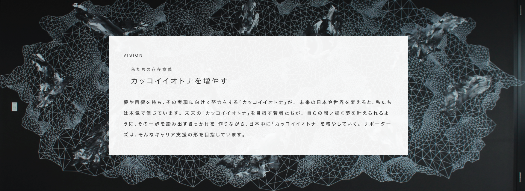 夢や目標を持ち、その実現に向けて努力をする「カッコイイオトナ」の姿を視覚的に表現しました。