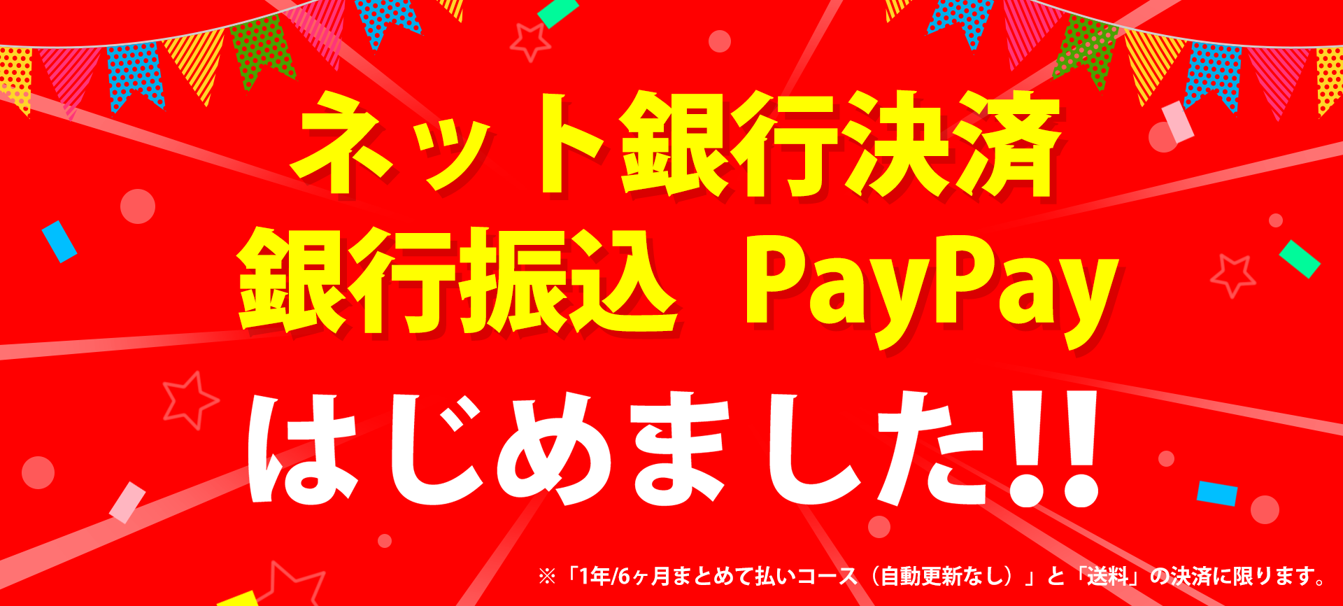 ※「6ヶ月まとめて払いコース(自動更新なし)」「1年まとめて払いコース(自動更新なし)」「送料」が対象です。それら以外はクレジットカード決済のみでのご利用となります。