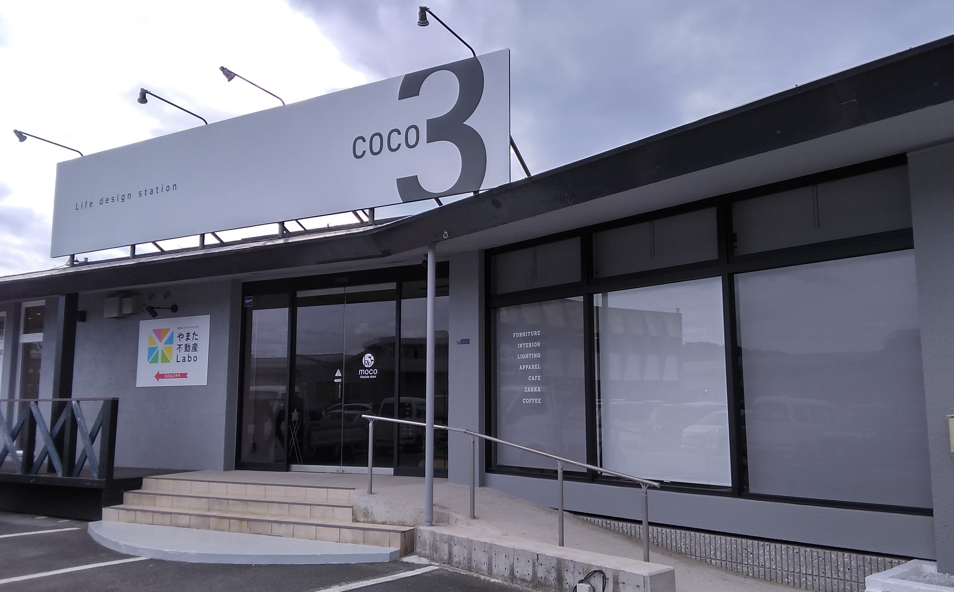 不動産店(やまた不動産Labo)と家具、雑貨、カフェ(moco lifestyle store)が融合したこの施設を「COCO3(ココスリー)」と名付けました。気軽に立ち寄り、心温まるカフェ体験を楽しみ、未来の幸せな住まいを探し、魅力的なライフスタイルを見つけられる場です。2つの要素が融合し、新たな価値と喜びを提供します。