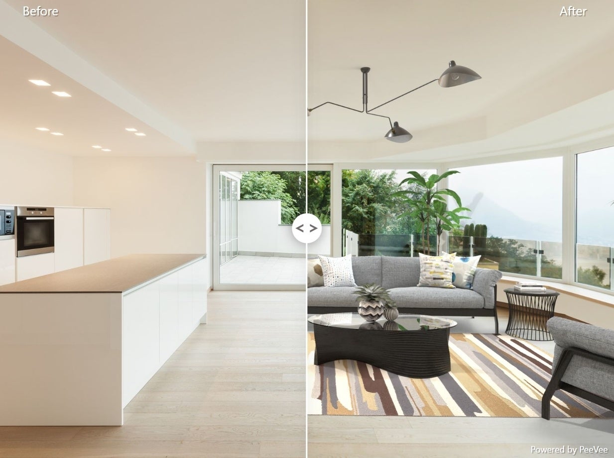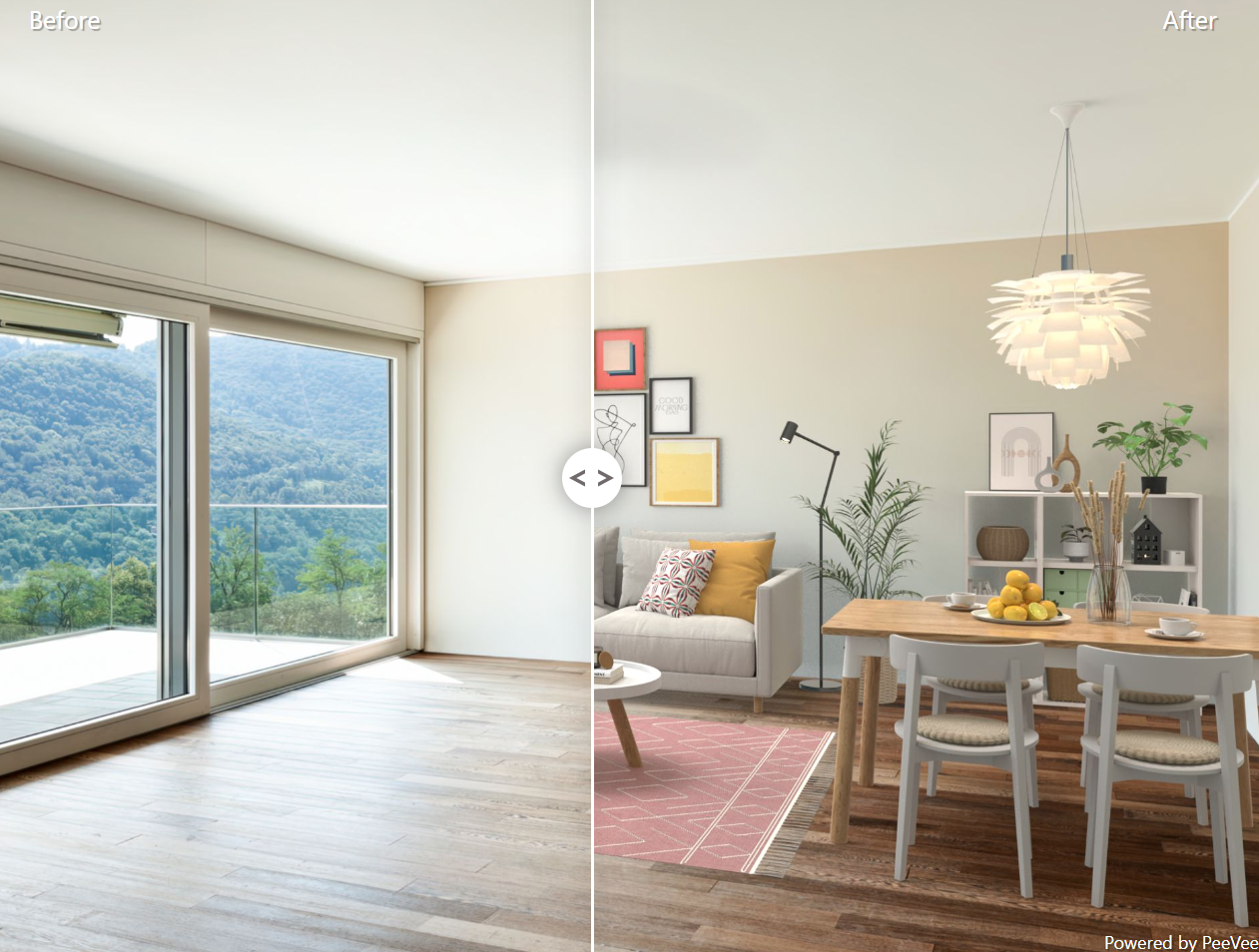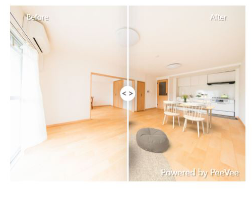 "みくらべさん"とはCGインテリアコーディネートされた画像のBefore・Afterをわかりやすく見比べ、演出することができるスライドビューです。