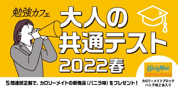 勉強カフェを運営する株式会社ブックマークス(本社:東京都、以下「ブックマークス」)は、大塚製薬株式会社(本社:東京都、以下「大塚製薬」)協賛のもと、「大人の共通テスト2022春」を開催します。